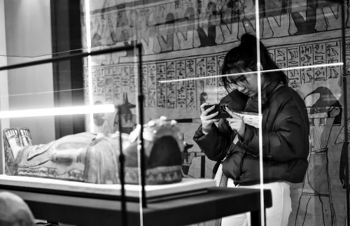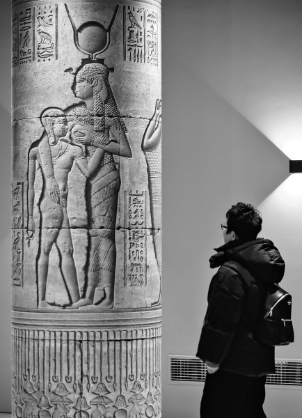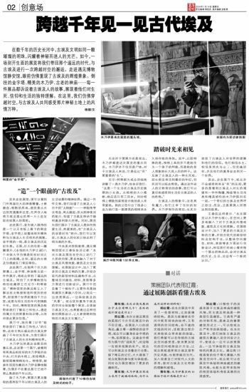 在数千年的历史长河中,古埃及文明如同一颗璀璨的明珠,闪耀着神秘而迷人的光芒。如今,一场别开生面的展览将我们带回那个遥远的时代,与古埃及进行一次跨越时空的邂逅。走进遇见博物馆静安馆,眼前仿佛重现了古埃及的辉煌景象。倒挂的金字塔、精美的木乃伊、古老的神庙……每一件展品都诉说着古埃及人的故事,展现着他们对生死、信仰和生活的独特理解。在这里,我们仿佛穿越时空,与古埃及人共同感受那片神秘土地上的风情万种。 杨颖/文 “造”一个眼前的“古埃及” 还未走进展馆,便可以看到门外两座巨大的神兽雕像,土黄颜色,粗粝的质地,感觉是从无边的荒漠搬来这里,先声夺人地将古埃及遗址的那一片土色呈现在观展人的面前。 走进展厅,首先映入眼帘的是一个从天花板上悬下的倒金字塔,金字塔上规整地排列着各种与古埃及人生活相关的图案,金字塔的一侧,是古埃及的历史纪年表。正面,巨大的年轮一圈圈漾开,《永恒的木乃伊之谜》八个宋体大字仿佛是刻在时间之门上的图腾,此刻,遥远的古埃及仿佛就在门背后等你。 走进展厅,右侧两个巨大的屏幕上,金字塔、神庙等古迹一件件展开,将观众带到了遥远的古埃及。阿伯丁大学博物馆与特别收藏部主任尼尔·柯蒂斯说:“博物馆里的展品能让人了解这些文物被制造和使用的世界,即使那个世界距离你千万公里,或是与你生活的年代相隔数千年。同时,博物馆里的展品能帮助我们了解自己和他人,遗迹所属文化的背景和知识等,从而对彼此更加包容。” 展厅中,陈列着132件“能帮助我们了解自己和他人”的文物,这些文物从遥远的古埃及穿越了千年时光而来,为我们展示了古埃及人的生活和精神世界。 木乃伊当然是这场展览的重头戏,走进第一个展厅,就看到有两具品相完好的木乃伊陈列在中央,打开的木棺上,彩绘精美,脸部图案栩栩如生。棺椁里,被麻布层层包裹的木乃伊安静地躺着,仿佛并不在意这是它已经不那么熟悉的千年以后。 除了木乃伊,策展方更加重视的是再现千年以前古埃及人的生活场景和精神世界。通过一件件文物,我们知道了古埃及人心目中的“太阳船”——一种船身窄长弯曲、两头翘起,供太阳神使用的船只;知道了古埃及神话中赫利奥波利斯九柱神。同时,展览向我们展示了古埃及人是如何热爱生活、热爱美的,在“古埃及人的妆容时尚”部分,我们可以发现,古埃及人的化妆已经达到了相当高的水准。 中央美术学院教授、遇见博物馆馆长王春辰告诉记者:“本次古埃及展览在空间上进行了大胆的创新,更多地融入了对于古埃及风情地貌、建筑及文化的理解。在展陈设计中,加入了更多的古埃及文物的元素,并结合现代的新型材料及建构手法,从整体空间颜色、材料、美陈等多方面进行创新设计。展厅中还安置了十根柱子,主要作用是抽取建筑元素融入空间,让观众一边欣赏展品,一边体验埃及的‘风景’。观众犹如置身于埃及的空间去体验整个展览,去体验古埃及文化,也希望通过这种创新的展陈设计,让大家领略到独特的古埃及文化魅力。” 踏破时光来相见 无论对于策展方还是观众,木乃伊都是这次展览的重点所在。木乃伊并不仅仅是尸体,对于古埃及人来说,它是远比“死”更重要的“生”。 尼尔·柯蒂斯为观众详细地讲解了一具木乃伊,他告诉我们:“这是一个生活在古埃及历史晚期的小女孩。从棺椁的大小推断,她应该只有三四岁。同时棺椁上精致的装饰显示她的亲人非常爱她。她的父母付出了很多心血为她打造一副漂亮的棺椁来永久保存她的身体。其中,比较特殊的是,棺椁上画的并不是她作为一个孩子的样貌,而是她的亲人想象她长大成人后的样子。这反映了古埃及人的一种生死观,即生前没有活到最好的年纪,但死后可以抵达那里。通过这件动人的文物背后的故事,我们可以真切地感受到生活在古埃及的人的思想。” 古埃及人的想象中,法老具有魔力,他们主宰了当时的世界。木乃伊制作的背后,也充分体现了古埃及人对世界的理解和他们的信仰。他们相信永生,相信虽然肉身走了,但灵魂还在,并且他们的真身会走到另一个世界。 因此,走在展厅中,观众并不会感受到来自“死”的压抑,更多的是看到古埃及人对生的渴望和一件件陶罐、陶盆等生活用具和精美绝伦的木乃伊陈列在一起,一个奇幻的古埃及世界呼之欲出,而这,正是策展人所想达到的效果。 王春辰这样表示:“本次展览以木乃伊为核心,在空间上更多地融入了对于古埃及风情地貌、建筑及文化的理解。在展陈设计中,加入了更多的古埃及文物的元素,并结合现代的新型材料及结构手法,从整体空间颜色、材料、美陈等多方面进行创新设计,相信我们在细心看完每一个展出的物品后,会对古埃及的历史、生活、社会有一个新的认识。” ■对话 策展团队代表邢红霞: 通过展陈创新看懂古埃及 青年报:本次古埃及展的打卡点位有哪几个?具体的设计理念是什么? 邢红霞:本次古埃及展览的美陈打卡分布在展览中的不同区域。在展览入口的拐角处,矗立着一座倒挂的金字塔,观众可以置身在金字塔的一角,拍照留念。这座金字塔作为展厅的“迎宾员”,欢迎每一位前来观展的用户。观众可以和埃及法老像进行合影,留下难忘的记忆,大大提高了观众观展的参与度与体验感,同时也为展览增加了更多的趣味