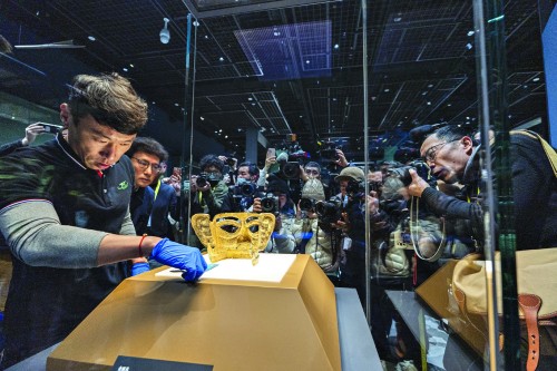 薄如蝉翼却精致闪耀的黄金面具、造型独特形象神秘的竖披发青铜人像——两件于2021年出土、在四川广汉三星堆博物馆十分受欢迎的“重量级”文物,昨天在新落成的上海博物馆东馆特展厅内开箱,安全转移进展柜之中,此次特展363件文物已悉数到位。2月2日起,“何以中国”文物考古大展系列第三展“星耀中国:三星堆·金沙古蜀文明展”将在上博东馆开幕,让观众能够领略中华文明的多姿多彩和博大精深。青年报记者昨天前往上博东馆提前探访时注意到,这座总建筑面积超过11万平方米的宏伟建筑,目前已经基本就绪。 ■03 上海博物馆东馆将于2月2日部分对公众开放。开幕大展正是“何以中国”文物考古大展系列第三季“星耀中国:三星堆·金沙古蜀文明展”。青年报记者昨天前往上博东馆提前探访时注意到,这座总建筑面积超过11万平方米的宏伟建筑,目前已经基本就绪。开放的第一阶段,每天都会开放8000个预约参观名额,前两天预约都是5分钟秒光。 青年报记者 郦亮 “三星堆展”力求呈现中华文明的一体多元 记者昨天上午赶到上博东馆时,“星耀中国:三星堆·金沙古蜀文明展”进行了最后两件重点展品的开箱布展。当工作人员小心翼翼地将“竖披发青铜人像”从箱子里搬出时,现场一片惊呼。只见这件商代晚期的青铜人像,脑后头发竖起,浓眉大眼,鼻梁高挺,手臂粗壮,不仅是一个标准的帅哥,还是一个英姿飒爽的“肌肉男”。 上海博物馆馆长褚晓波亲自将青铜人像在展柜里摆正,他对这件展品也是叹为观止的。他告诉记者,这人像的肌肉发达显然是一种写实主义的风格,过去很多人认为,写实主义是从西方传来的,现在来看,其实中国的商代晚期就有这类写实主义的作品了。而且也一直有人认为,三星堆文化是一个独立的文化,甚至是外星人文明,现在来看,这个人像的衣着是“右衽”,而少数民族当时大多是“左衽”,这也表明,三星堆文化还是受到了中原文化的影响。 另一件现场布展的文物是同样来自于商代晚期的“金面具”。这尊面具和一个成年人的面孔大小差不多,但是却只有几十克重。黄金被铸造打制得极薄,同时各种面部细节又是栩栩如生。上博青铜研究部研究馆员胡嘉麟告诉青年报记者,过去有一种说法是,黄金技艺是从西亚传到中国的,现在来看不是那么一回事,起码在3000多年前,中国的黄金加工技艺已经相当成熟了。 此次展览是上博携手四川省文物考古研究院、四川广汉三星堆博物馆、成都金沙遗址博物馆等全国11个省市的28家单位共同举办。本次展览共计363件/套文物,汇集了最新考古发现,最新文物修复成果,是迄今为止古蜀文明考古出土文物在四川省外最大规模、最高规格的阵容。展览利用东馆的一楼和二楼两个临展厅约2000平方米的空间,分“天行乾道”“地势坤物”“人和明德”三大主题,向公众全面揭示古蜀文明的面貌、内涵和特点。 “我们的‘何以中国’文物考古大展系列已经举办了三个展览,从最初上博一家举办,到后来联合长三角地区三省一市共同举办,到现在是全国28家单位共同举办。我们就是想向观众呈现中华文明的兼容并蓄和多元一体,呈现中华文明的开放包容特性。”褚晓波对记者说。 迎接观众,上博东馆已经准备好了 这也是青年报记者第一次走进建成之后的上海博物馆东馆。记者注意到,尽管一些区域仍在进行优化和保洁,大部分展馆的布展还在进行之中,但这座庞大博物馆所散发出来的那份恢弘、沉稳和极具亲和力的气质,已经足以让人怦然心动。 上博东馆计划分三个阶段逐步对外开放。第一阶段也就是2月2日起,东馆“青铜展厅”将率先试开放,进行压力测试。而开幕展览“星耀中国——三星堆·金沙古蜀文明展”则是在一楼的一、二临时展厅举行。三楼的第三特展厅还将推出“邂逅三星堆12K数字艺术展”等。第一阶段的开放空间占到东馆展陈空间的25%左右。从今天的探访来看,这些区域的准备工作已经基本就绪,每天接待8000名观众应该不是问题。 第二阶段到6月底前,开放面积将达到展陈空间的80%。届时,开放除“中国历代书法馆”“中国历代绘画馆”“赵朴初书法艺术馆”“海上书画馆”以外的其他所有展厅与互动体验空间。预约限额可以上升到每天2万人次左右。第三阶段到11月底前,东馆实现全面开放,到时预约限额最多每天可以达到3万人次。 位于浦东新区世纪大道1952号(1952年恰是上博建馆之年)的上博东馆,与上海科技馆、上海图书馆东馆、东方艺术中心等文化设施形成文化集聚效应。是上海“文化东进”战略中的重要一环。东馆建设占地面积约46000平方米,总建筑面积为113200平方米,其中,地上建筑6层,地下建筑2层。东馆陈列展示区总面积约3.36万平方米,馆内共设20个展厅和互动体验空间,包含文物类常设展13个、互动体验空间4个、特展厅3个。在建筑设计上,东馆强调开放性与共享性,每个楼层都有落地玻璃、平台或户外区域,引入自然光线,让博物馆内部的展览和上海这座城市的最美景观“内外”无间、融为一体、互相辉映。 褚晓波告诉青年报记者,上博东馆1月27日开放预约之后,呈现出一票难求的局面,这两天每天8000个名额一放出基本上在5分钟之内就一抢而空,这说明人们对上博东馆充满了期待。到了今年年末上博东馆全面开放,每天3万预约参观名额应该可以满足人们的需要。 未