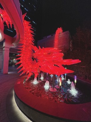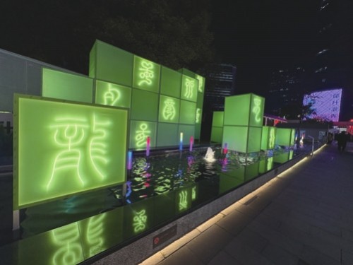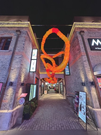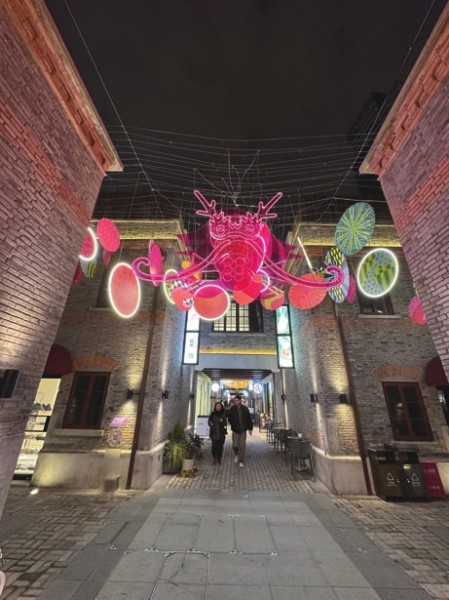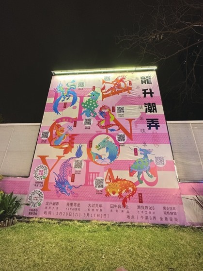一路繁花,全城寻龙。今潮8弄在2024甲辰龙年到来之际,以中国传统文化中“龙生九子”的传说为灵感,打造“龙升潮弄 和乐融融”海派今潮年味季。今潮8弄此次糅合了艺术新力量、技艺新传承、美育新体验,通过艺术展览、文艺演出、文创集市等不同类型的百余场活动结合,共塑“海派龙年”,邀请所有“龙之传人”神游传统文化与当代想象交织的百年弄堂新年新景致。 青年报记者 杨力佳 龙是一个想象中的神话生物,和海派文化一样经历了历史的变迁,融入了不同的文化特质。龙在海派文化中也扮演着各种各样的角色,具有特殊的意义。此次灯会,不光是一场将传统与创意相融合的视听盛宴,更是一场激发市民游客在参观的过程中对文化产生更多深层思考的探索之旅。设计师杨威杰也是此次的策展人,他表示,“龙的传人”是全球华人的共同称谓,每个人都有心里的那一条龙,或翱翔长空或隐匿云间或潜藏于渊。龙又是一个并不存在的生物,中华民族丰沛的想象力在几千年的时间里把一个虚构中的神兽变为富有民族共同情感的精神图腾,这个升华的过程细细品来令人着迷。“龙的面貌始终在变,潮流永远在变,愿我们的想象力也能永远绽放,传递接力,让华夏文明渊源流芳。”结合中华神话、历史典故与装置实景,此次灯会还同步推出了“弄里寻龙”AR跨媒介互动游戏,打破线上与线下边界,让市民游客边逛灯会、边以手机扫描交互灯会装置,从中了解龙子故事、获悉剧情任务,在有意思的故事里,逐步探索与完整空间艺术展的全部图景。展览、科技、剧情等多维体验相融合的方式,有效地加深了市民群众,尤其是青少年群体对于中华神话与中华传统文化的了解。 特别值得一提的是,其中,“龙升潮弄”潮弄九景——无边界青年创想中心第三届空间艺术展暨今潮8弄新春元宵灯会邀请了九个不同身份和职业的创意工作者,由各自角度表达传统文化与当代想象的“无边界共振”。那么,在这些创意工作者的眼里,“龙之九子”究竟啥模样呢?此次,就让我们选取其中几个,先睹为快吧。 《螭吻戏水》 设计师 杨威杰 螭吻,又被称为水麒麟,多见于传统建筑屋顶两端。设计以此为原点,利用今潮8弄主入口建筑的女儿墙、廊柱和水池,构筑出一场视觉的动感盛宴。作品以交通隔离圆锥为创作单元,结合内置框架和LED灯光,打造出沿墙蜿蜒的巨龙。这些交通锥构成的龙鳞为整个作品注入了生命力和活力,呼应着传统建筑中螭吻的神秘意义。装置的创意不仅仅体现在形式上,还在于其环保理念的实践。活动结束后,这些交通锥并不会沦为一次性的艺术消耗品,而是可以再次投入使用,延长了整个装置的生命周期。这一创新设计不仅直面当下的环保问题,更是对未来绿色艺术的一次积极探索。 《负屃斗文》 书法家 王玺 负屃雅好斯文,优雅地盘绕于石碑之巅。作品巧妙地将笔画等宽源自于秦朝的铁线篆书法,以LED灯条形式“书写”。这种独特的表达方式创造出古老与现代的对话,以艺术的方式传承了历史的文化底蕴。作品选用了具有传统宣纸肌理的幕布,18个龙字置于其后,灯光“字”与幕布“纸”交相呼应,传统书法的介质和介质关系均被重新定义,而整体效果又宛如水墨一般若隐若现。整个装置的框架形态则仿佛是一座座山峦,与场地的水池和草地构成了一场当代的山水景色。 《风驰睚眦》 平面设计师 秀子 睚眦,中国古代神话中龙之九子的第二子,豺身龙首。睚眦本意是怒目而视,民谚有云“一饭之德必偿,睚眦之怨必报”,也是克杀一切邪恶的化身。作品希望以一种轻盈的解构方式完成此次以龙为主题的艺术装置。12片不同轮廓线的亚克力切片构成粉色的龙头,70片切片构成多彩的龙身,蜿蜒悬挂在今潮8弄的巷子内。鲜明热烈的色彩表达睚眦所代表的强烈情感,以一种通感的手法来传递饱满的视觉情绪。在高对比明度色彩下,转译传统图腾,将龙鳞、豺纹、祥云、烟花等传统波普几何化,赋于传统图案新的生命力。 《蒲牢繁花》 花艺师 小祁 蒲牢的形象以钟提梁的兽钮为表现载体,其受击时迸发出巨响,洪亮悠扬。装置以此为起点,根据场地的特性设计,使其与整个环境产生共鸣。装置点位位于整个弄堂的末端,另一侧则是在建的滨港商业中心。这个装置被构想成一扇跨越两个区域的大门,宛如一座跨越新年的龙门,象征着时光的跃迁和新年的到来。在这扇大门内,细腻而生动的绒线花朵蓬勃而出,两朵巨型的蝴蝶兰绒线花从门内向外奔涌,宛如欢快奏响的新年钟声,又如同蒲牢发出的巨响回荡,呼应着迎新的主题,为整个场地带来了一场光影和声音的盛宴。 《囚牛融乐》 爵士小号演奏家 李晓川 在这个充满情感的艺术装置中,囚牛爱好音乐的个性与李晓川的乐曲交融合一。装置的灵感源自李晓川的经典爵士乐作品《丰收》,以其为起点,营造出风吹麦浪的喜庆意境。这个装置不仅仅是对音乐的呈现,更是一场身临其境的视觉和听觉双重体验。李晓川以电子乐的形式重新编排了《丰收》,其中的LED根据音乐的节奏和律动进行变化,在音符和灯光的交织中,勾勒出一幅宛如凤凰朝翔、麦浪翻滚的画面,在音符的飘逸中与装置互动,营造出一场充满灵性的音乐之旅。