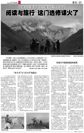 今年寒假一开始,00后李舒便坐上Z164次列车从上海到拉萨。“为了这趟西藏之旅,我筹划了半年,作为送给自己20岁的生日礼物。”李舒是上海对外经贸大学2021级国际经济与贸易专业的一名学生,她在一门名为《阅读与旅行》的选修课上种下了西藏之旅的种子,经过了半年的阅读与准备,她要到拉萨“验收”课程成果。这门选修课,启迪了如李舒一般的一波波学子,带他们走向“诗与远方”。 青年报实习记者 李蕙兰 记者 刘昕璐 “有字书”与“无字书”的组合 “一个人在旅行时必须带上知识,如果他想带回知识的话。”每年秋季学期的周二晚上,学生跟着授课老师的足迹游览上海、北京、香格里拉、西藏等地——不点名、没教材,“PPT”全部来自教师亲自游历拍摄的美图,是这门课的显著特点。 这是上海对外经贸大学的施晖老师开设《阅读与旅行》的第七年,从第一次开课到现在,教室里几乎座无虚席,有抢到课的“幸运儿”,也有慕名前来“蹭课”的各年级同学,还有他所指导的学校社团“海鸥通讯社”的摄影发烧友。没有“秒杀”到课程的学生甚至一度在网上叫价800元求上课名额,然而却没人肯放弃听课的机会。 施晖的课程核心围绕着一句话展开:阅读的质量决定旅行的质量。看似不用教科书,实际上一节课下来,他向学生介绍的书籍囊括了文学艺术、哲学历史、社会科学等多个领域。2022级的小秦在课后作业中写道:“我似乎从来没有沉浸式地深入旅行过,在没有做足功课时就前往,从一个目的地匆匆赶到下一个。因为这门课的契机,我对于旅行的意义有了更深刻的理解,旅行不只是为了风景,更是为了拥有欣赏风景的眼光。” 关于旅行的阅读,施晖认为,要分为旅行前的阅读、旅行中的阅读、旅行后的阅读。在了解到选课学生想要去西藏旅行,施晖借给她三本书:一种是工具类丛书,如Lonely Planet的《西藏》《神的孩子都要去西藏》;另一种是知识类丛书《走近藏传佛教》,方便学生了解西藏当地文化。除此之外,他还推荐了自己正在读的《100年前西藏独行记》,以及课堂上播放过的纪录片《冈仁波齐》片段。施晖常对学生说:“在旅行中的‘阅读’就不光是看书了,是见世界,见众生,见自己。” 提升课外阅读量后,学生能够运用所学知识,掌握在旅行中解决实际问题的各方面能力:包括机票预订、酒店预订、行程设计和合理规划、规避风险,以及增强对旅游目的地的检索能力和信息采集、筛选、辨伪能力等。“课堂上很多干货,稍微一不留神可能就会‘错过’一次绝妙旅程。”李舒说道。在读完推荐的书籍后,李舒此次还到当地博物馆“巩固”,整个旅程结束后,她也将继续寻找书籍文献以解决旅途中遇到的困惑,通过亲身实践实现一次知识闭环。 从18岁起自助旅行到如今,80后施晖的足迹遍布世界各地,他曾有过9次西藏旅行的经历,采用过各种进藏方式、亲历过各种线路,他常常被学生称为“活地图”。“既要读‘有字之书’,也要读‘无字之书’,通过积累知识、提高审美,发掘有趣的目的地,这样才会带给你属于自己的旅游路径和特殊体验。”施晖如是坚持。 从旅行中验收阅读的成果 作为土生土长的上海人,施晖每年都会把“上海”单列为一个专题,带学生挖掘上海市内新颖有趣的目的地,设计“有意思、有内涵、有故事”的City Walk线路,或打卡红色旅游景点。他所指导的学生社团海鸥通讯社每年也会进行春秋两次外出踏察活动,力求让学生更加熟悉上海这座生活学习的城市。 施晖每年都会对课程内容进行调整,每一届学生都有不同的体验。有一年,施晖以小组为单位,带领学生研究史料,对松江地区的古塔进行梳理考察。小组成员设计的《文学地图——引领景点可视化与城市可阅读》在“互联网+”大学生创新创业大赛中获奖。 接触的学生多了,施晖才真正意识到,他们的活动半径并没有想象中那么大,甚至很多上海本地的学生,对这座生养他们的城市也缺乏了解。纵然新的“网红热点”还在被持续地创造、生成,但很多人对旅游的认识无非停留在从自己待腻的地方转移到别人待腻的地方去。 令他印象最深的一份作业来自一名成长在云南昆明的学生。她巧妙地从自己喜欢的程耳的电影切入,讲述了对上海的变迁、对海派文化的认识。可见,电影和书籍是比较好的媒介,充分的阅读则可以帮助人更好地理解上海。 在施晖的建议下,有一些学生对外滩的今昔做了比较研究。他也总是鼓励学生们多去走一走、散散心,再坐一下2元的浦江渡轮从浦东到浦西。坐浦江渡轮总会撩拨起70后、80后上海人对黄浦江上交通工具变迁的追忆,而“2元的浪漫”不知道现下的年轻人还能不能体会。 2021级的佳慧原以为自己足够了解上海,却在阅读了有关上海的影视作品中看见了不一样的风貌,于是,她以《爱情神话》《繁花》为基础进行考察设计,并在作业中写下自己的思考:“真正地了解当地风情是需要融入当地生活中的。保罗·索鲁也说过,当旅行不再是为了到达某个目的地,而与你的生活融为一体时,这样的旅行收获最大。” 今年寒假开始前,就又有好几个学生向施晖“一对一”咨询旅游相关事项。“有的学生选择冬游西藏,有的学生选择去海岛度假,相当于把在课上提前预习一遍的旅行付诸现实……很期待他们在旅途中的阅读收获。”施晖说,“路在书中,书在路上,路就