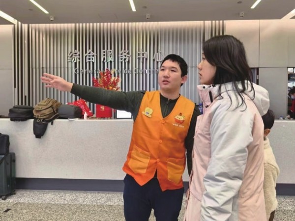 龙年春节将至,机场、火车站、长途汽车站、公交站人潮涌动,有这么一群年轻人,他们穿着橙色马甲,微笑穿梭在行色匆匆的旅客潮中,为旅客提供身份验证、查询班次、购票指引等服务,他们就是被旅客们亲切称为“小甜橙”的上海春运青年志愿者。上海团市委高度重视今年春运志愿服务工作,组织1400余名青年志愿者以青春之力温暖春运回家路。 青年报记者 孙琪 “志愿橙”守护归乡路 每到客流高峰,火车站的失物招领处也会格外热闹,虹桥火车站最近进入春运高峰,二楼的综合服务中心时常挤满不慎遗失物品的旅客。 “请您出示12306发的短信,我来帮您查找失物。”上海交通职业技术学院志愿者陈林维佳微笑地接待着旅客。他是一名退役军人,更是一位资深“小甜橙”,今年是他守护春运路的第四年。“我们每天要收到700~900件遗失物品,小到身份证、银行卡、大到行李箱,背囊……,认领旅客每天约为200~300人。” 自1月26日以来,陈林维佳每天提前约1小时抵达服务岗,十多天来朝七晚五,目前春运志愿服务累计时长已超140小时,面对大客流,小陈还随时准备好“补岗”。 “我的志愿空白填补上了!” 1月25日,身穿橙色马甲的东华大学志愿者李忠胜,正在上海南站内巡逻,一位中年女士在电梯口慌忙拦住了他。“下车后,我发现行李被误运到始发车站了。”列车长告诉她,行李会被放在下一趟车上,带到上海南站,她需要在南站等待。热心的李忠胜立刻带她去服务台开具进站票。列车抵达后,迟迟未见有工作人员取出她的行李。旅客神情变得紧张,小李马上拨打列车长及12306电话,获悉行李已被送至心尚服务台。旅客最终成功找回行李。 “成为一名‘小甜橙’真是太有成就感了。”李忠胜告诉记者,自上大学以来,他志愿服务过第六届进博会,参加过环保类志愿服务活动,但因为疫情原因,始终没有服务过春运。“在毕业前夕,我的春运志愿的空白终于填补上!”为此,小李还推迟了归乡日期,但父母十分支持他。 2月7日晚18:00,“小甜橙”李忠胜的春运志愿服务正式收官,他告诉记者,2月9日他将登上火车返回家乡!“父母对我非常骄傲,准备了好多好吃的等我回家!”“快学冷知识,送上暖服务!” 春节临近,多名志愿者坚守在上海虹桥国际机场的志愿服务岗位,他们遇到拿大件行李的旅客,帮忙提一提;看到旅客神情不安的,主动问一问。 徐亭玉是上海工程技术大学虹桥机场春运志愿服务活动的负责人。她在每个志愿服务日对接机场需求,安排各同学们的服务岗,并在3楼C、D岛处解答旅客们的疑虑。为了做好志愿服务,她通过请教机场工作人员,迅速学习掌握机场各种冷知识和情况:比如手推车不能推入登机口,进入登机口后有餐饮店,熟悉了各航空公司纸质机票的打印处,也学会了急救知识、心肺复苏技能和AED除颤机的使用方法…… 有一天,小徐在服务过程中遇到了免票旅客家庭登机口和起飞时间不一致的情况。小徐立刻带领免票旅客的母亲去吉祥航空公司办理出票手续,并将其送到安检处告知登机口的位置。老太太在安检处排队时,感激地与小徐挥手告别,“我感到特别开心和自豪。每个冷知识,都可让我的服务更加热情与周到。” [新闻背景] 您的春运路上有千名志愿者相伴 记者采访获悉,2024年上海青年志愿者服务春运“暖冬行动”于1月26日 正式启动,1400余名青年志愿者在铁路、机场、长途、地铁、公交等岗位上,以青春之力温暖春运回家路。 2月5日上午,团市委牵头市交通委、铁路上海局、机场集团、申通地铁集团、交运巴士等单位团组织赴虹桥交通枢纽开展春运志愿者慰问活动,关心了解志愿者的工作现状。团市委副书记王江参加了此次慰问,他对志愿者们风雨无阻参加志愿服务活动的奉献精神和社会责任感表示肯定,现场为他们送上志愿者慰问品、纪念徽章和新春祝福,并与志愿者代表们合影留念。 据悉,2024年春运于1月26日开始至3月5日结束,共40天。其间,铁路、机场、地铁、长途、公交等相关单位团组织将持续带领志愿者坚守春运一线,围绕引导咨询、票务协助等需求和老幼病残孕等群体提供精准化、专业化的志愿服务,持续营造安全、有序、温馨、舒适的春运环境。