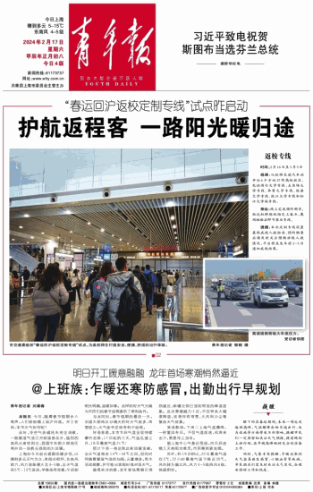 返校专线 时间:2月16日至3月5日 线路:从虹桥长途汽车站开往6个方向27所高校校区,包括闵行大学专线、五角场大学专线、奉贤大学专线、临港大学专线、张江大学专线和松江大学城专线。 乘坐:线上完成预约购买,抵达虹桥枢纽指定上客点,展码核验后即可乘坐专线。 提醒:本次定制专线设置最低成线人数标准,预约购票后请及时关注预购班线人数情况,平台将在发车前3-5日通知成线结果。 ■02 春节长假临近尾声,集中返程高峰如约而至,组织春运返校专线、地铁加开定点加班车、高速公路小型客车免费通行……上海全力运送返程旅客! 青年报记者 郭颖 为27所高校试点春运返校定制专线 为进一步提升春运期间外地师生回沪返校的出行体验,补充春运大客流时间段枢纽交通的运输服务,市交通委依托交通生活数字化转型“出行即服务”(MaaS)平台,组织“春运回沪返校定制专线”试点,为返校师生打造安全、便捷、舒适的出行体验。 本次专线承运服务由强生交通提供,以市场化运作模式,提供2月16日至3月5日期间从虹桥长途汽车站开往6个方向27所高校校区的定制专线。 定制专线均采用一人一座客运巴士承运,提供虹桥枢纽直达学校专线服务,目的地将停靠多个下车点。平台支持线路班次查询、预约、购买、分享等线上一站式服务。返校师生乘客根据已完成预约购买的线路,抵达虹桥枢纽指定上客点,展码核验后即可乘坐专线。 返校师生可根据自身返沪行程安排,了解详情并预约购票。具体售票规则、购买攻略、上车点出行指引等信息可在“随申巴士”小程序平台查看。 预订时间为即日起至3月2日,试点运行时间:2月16日至3月5日,专线班次方向及线路包括:闵行大学专线、五角场大学专线、奉贤大学专线、临港大学专线、张江大学专线、松江大学城专线。 需要提醒的是,本次定制专线设置最低成线人数标准,预约购票后请及时关注预购班线人数情况,平台将在发车前3-5日通知成线结果,以便预约者提前做好出行安排。 本次上车点在虹桥枢纽内长途客运站,虹桥火车站出站后在室内步行15-20分钟即可抵达,发车前15分钟开始检票上车。 地铁加开定点加班车延时运营 面对返程高峰,上海地铁“火力全开”,满级运送。2月16日、17日,2、10号线虹桥火车站站延至次日2:30,17号线虹桥火车站站延至次日0:00。 其中,2号线定点加班车始发站虹桥火车站站,终点站龙阳路站,中途停靠虹桥2号航站楼站、淞虹路站、中山公园站、静安寺站、人民广场站及世纪大道站。其中,除始发站虹桥火车站站以及虹桥2号航站楼站可同时上下客外,其余各停靠站点都只下不上,途经换乘车站不可换乘。 同时,2号线浦东国际机场站将开行定点加班车,加班列车沿途仅停靠龙阳路站、世纪大道站、人民广场站,终点站中山公园站。上述各停靠站点都只下不上,途经各换乘站不可换乘。 10号线虹桥火车站站往五角场站方向定点加班车沿途仅停靠虹桥火车站站、虹桥2号航站楼站、虹桥1号航站楼站、虹桥路站、陕西南路站、南京东路站、海伦路站、四平路站、五角场站,其余车站跳停。停靠车站中,虹桥火车站站、虹桥2号航站楼站、虹桥1号航站楼站可同时上下客,其余车站只下不上,途经换乘站不可换乘。 2月16日、17日,17号线虹桥火车站站往朱家角站加班车延长至次日0:00。17号线定点加班车沿途仅停靠虹桥火车站站、徐泾北城站、汇金路站、漕盈路站、朱家角站(终到站),其余车站跳停。停靠车站中,虹桥火车站站(始发站)可同时上下客,其余车站只下不上。 此外,周末延时运营保障也丝毫没有落下,2月16日、17日(周五、周六),上海地铁1、7、8、9、10、13号线继续执行常态周末延时运营方案。 同样,为运送春运后阶段集中到达的返程大客流,即日起,地铁1、2、3、4号线开行“多头班车”,其中,1、3、4号线上海火车站站,1、3号线上海南站站,以及2号线虹桥火车站站,将在首班车前后视情再投放载客列车,及时疏运铁路站守候地铁首班车的返程大客流,避免与日常通勤流叠加。 高速公路小型客车免费通行 今年春节,高速公路实行小型客车免费通行政策,免费时间从即日起至2月17日(正月初八)24:00。 在部分提前释放的返乡探亲流、学生流及旅游流后,假期出行需求有所回落,高速公路流量处于春运低位,但流量较往年春节仍有明显增长。在春节团聚习俗、节日放假安排及免费通行政策的共同作用下,预计2024年春节期间全市高速公路日均流量为90万-94万辆次,同比增长8%-13%,其中重点路段——长江隧道预计春节期间日均流量将达8.7万辆次,同比上升约10%,春节后期返程车流将持续增长,正月十五后路网会逐步恢复常态运行水平。 春节期间,城投公路提前在各收费道口设置小客车专用限高门架,要求各收费站制定一点一策、一站一方案,高峰期间开足收费车道、加派特情处置人员、采用复式发卡收费,在重点保障路段积极配合属地交警做好限流措施,确保各收费道口交通平稳有序。 各服务区根据现场实际流量情况加派保洁、保安人员,确保服务区停车有序、环境整洁,同时做好各项便民措施准备。重点关注信息发布工作,确保突发事件及时报送,及时发布拥堵路段、绕行路线等相关信息,通过情报板、车道标识等引导车流有序通行。