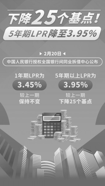 龙年伊始,在MLF利率未变的情况下,5年期贷款市场报价利率(LPR)降了,而且创出史上最大降幅! 2月20日,中国人民银行授权全国银行间同业拆借中心公布,即日起贷款市场报价利率(LPR)为:1年期LPR为3.45%,维持不变;5年期以上LPR为3.95%,较前值下行25个基点。5年期以上LPR是绝大多数个人住房贷款利率的定价“锚”。本次5年期以上LPR下调意味着,等到了房贷合同约定的“重定价日”,个人的房贷利率和对应的月供会随之下行。 青年报记者 孙琪 居民房贷利息支出将减少 此次LPR调整已有预兆,1月24日国新办新闻发布会中,央行行长潘功胜提及“我们将把提供给金融机构的支农支小再贷款、再贴现利率由2%下调到1.75%,这些措施都将有助于推动信贷定价基准的贷款市场报价利率,也就是我们说的LPR下行。” “本次LPR非对称下降在预期之内,但5年期以上LPR幅度超出预期。”招联金融首席研究员董希淼接受记者采访时表示,5年期以上LPR是个人住房贷款和企事业单位中长期贷款的定价基准。5年期以上LPR大幅度、超预期下降,首先传递出提振居民住房消费、促进房地产市场平稳发展的强烈信号。5年期以上LPR下降之后,居民房贷利息支出将减少,有助于提振居民住房消费的意愿和能力。对存量房贷而言,房贷利率将在重定价日之后进行调整;对新增房贷而言,预计多数银行将在本次LPR基础上保持加点不变,进而降低新增房贷实际利率。同时,5年期以上LPR大幅下降,还将降低企事业单位贷款中长期贷款利率,进一步激发企事业单位中长期融资需求。 5年期LPR调降,对市场将产生何种影响呢? 国寿安保基金认为,对于债券市场来说,LPR降低具有两种效应:一是降息可能减轻提前还贷压力,促进融资需求,带来宽信用效应;二是贷款利率,尤其是中长期贷款利率下行,可能带来贷款和债券之间的比价效应。 沪房贷利率步入“3”时代 今年1月以来,已有多地继续下调首套房贷利率。贝壳研究院监测数据显示,截至1月中旬,百城中有60城首套房贷利率已进入“3时代”。随着此次5年期LPR下调,上海的首套房贷利率随之由“4时代”步入“3时代”。 2月19日前,上海商业住房贷款利率(当时5年期以上LPR为4.2%)情况如下: 首套房贷利率:4.1%(LPR(4.2%)-10BP); 二套利率(主城):4.5%(LPR(4.2%)+30BP)(覆盖区域:黄浦、徐汇、静安、长宁、虹口、杨浦、普陀、浦东、闵行、崇明); 二套利率(郊区):4.4%(LPR+20BP)(覆盖区域:临港、嘉定、青浦、松江、奉贤、宝山、金山); 2月20日起,首套房贷利率将从4.1%下调至3.85%,二套房贷利率下调至4.15%-4.25%不等,具体如下: 首套房贷利率:3.85%(LPR(3.95%)-10BP); 二套利率(主城):4.25%(LPR(3.95%)+30BP)(覆盖区域:黄浦、徐汇、静安、长宁、虹口、杨浦、普陀、浦东、闵行、崇明); 二套利率(郊区):4.15%(LPR(3.95%)+20BP)(覆盖区域:临港、嘉定、青浦、松江、奉贤、宝山、金山)。 上海地区众多银行行动迅速,快速更新了房贷利率。平安银行上海分行接受记者采访时介绍,根据人民银行指导,该行此前执行按揭首套4.1%、二套最低4.4%的定价标准,“本次2月20日最新LPR调整后,我行立即执行,按照首套3.85%,二套最低4.15%定价执行。以100万元商业贷款30年计算,每月节省约140元。” 另一位国有大行工作人员向记者表示,购房人最新申请房贷将按照这一标准进行执行。 LPR调整后,下月要还的房贷会立刻减少吗?答案是未必。 对于此前放弃转为LPR、选择固定利率的购房者来说,房贷利率和LPR调整无关,房贷不会发生变化;对于已转换为LPR定价利率的存量贷款人,需把重新定价周期和重定价日考虑在内,在重新定价日前月供不变。建行客服表示;“贷款利率并不会每月进行调整。具体要看在借款合同中约定的利率调整周期和日期。新发放个人住房贷款的利率调整周期一般为1年,利率调整日期一般为‘于调整年的1月1日调整’或‘于起息日在调整年的对月对日调整’”。