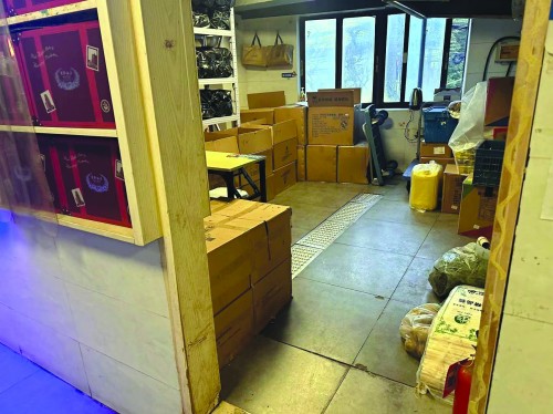 写有国际饭店蝴蝶酥店招的“上海店”夹杂在诸多热食店中间,大约20个平方米,地上全是油渍,房内四周堆放着10多个写有“原味 20号”字样、同时印有“国际饭店”商标Logo的巨大纸箱。