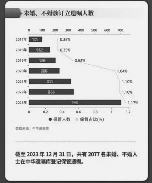 北大研究生订立遗嘱希望将自己的所有财产捐赠给母校,并排除母亲与其他亲属继承的可能性。这样的案例并非天方夜谭。 昨天,中华遗嘱库向社会发布2023年度《中华遗嘱库白皮书》,白皮书显示,90后、00后立遗嘱人数明显上升。和中老年人群立遗嘱有所不同的是,他们订立遗嘱的原因主要是“避免财产下落不明”。他们中不少人还将自己的“虚拟财产”也纳入遗嘱范围。 青年报首席记者 范彦萍 上海地区:银行存款在遗嘱中比例高于其他地区 根据2023年度《中华遗嘱库白皮书》显示,截至2023年12月31日,上海地区共有41333人在中华遗嘱库订立遗嘱,占全国总量的14.07%。从2017至2023年间,上海地区立遗嘱人群年龄总体以60至70岁为主,且比例逐年上升。 此外,从2017年至2023年,上海地区中青年订立遗嘱的数量为4343人,约占全国中青年立遗嘱总体量的24.01%。从整体情况看,中青年立遗嘱主要人群分布在北京、上海、广州等主要地区,且各地区中青年立遗嘱人数保持持续增长的势头。 从财产分配方案上看,上海地区直接继承人主要以配偶和子女为主。其中,“配偶互相继承后由子女继承”占比30.88%,“子女直接继承”占比25.96%,“先子女后孙辈”继承占比25.79%。 从遗嘱涉及的财产种类看,从2017年至2023年,上海地区立遗嘱人群处理的财产主要以不动产、银行存款等为主。其中,不动产占比最高,始终保持在99%的水平线。统计七年间,遗嘱涉及财产种类趋于多样化,且从2019年开始,证券、基金等财产类型逐渐增多。 记者注意到,2023年上海地区遗嘱人财产类型中,涉银行存款的比例高达19.88%,相较而言,北京地区仅有15.82%,江苏地区仅有18.83%,上海地区遗嘱中的银行存款比例明显高于其他地区。 对此,中华遗嘱库江浙沪区域负责人黄海波认为,上海作为我国经济最发达的城市之一,居民的金融投资和理财观念较为普及,很多人倾向于将闲置资金存入银行,以获取稳定收益或进行其他金融投资。此外,随着房地产市场的调控和房价的波动,部分上海居民开始将投资中心转向金融领域,以实现资产的多元化配置分散风险。同时,与房产相比,银行存款有着更好的流通性与便利性,也更容易进行财产管理和传承。这一系列原因导致了上海地区银行存款在遗嘱中比例高于其他地区。 名校研究生订遗嘱将所有财产捐给母校 根据《中华遗嘱库白皮书》(2023年度)数据显示,大学阶段立遗嘱人数比重在增加,学历高的年轻群体接受遗嘱理念的程度更高。 刚刚研究生毕业的胡先生从小父母离异,跟着父亲和爷爷奶奶一起生活,亲生母亲从没照看过自己。多年后,疼爱自己的父亲与爷爷奶奶相继离世,使得胡先生一直无法从悲伤中走出来,并患上了严重的抑郁症与双向情感障碍,为此还住进了医院治疗。就在这种情况下,亲生母亲都没来医院看过自己。 在身边朋友的帮助下,胡先生逐渐走了出来。后来,胡先生靠着自己的努力考上了北京名牌大学的研究生,学习过程中,学校的老师与同学们给了胡先生莫大帮助,让他很受感动。来到中华遗嘱库订立遗嘱时,胡先生希望将自己的所有财产,捐赠给母校,并排除母亲与其他亲属继承的可能性,实现自己的愿望。 据中华遗嘱库相关负责人分析,民法典1127条中规定,配偶、子女、父母属于第一顺位继承人。本案中,胡先生从小没有得到过亲生母亲任何的爱。但如果胡先生没有订立遗嘱的话,他的亲生母亲是有资格继承到胡先生遗产的。然而,这并不是胡先生想要看到的结果。也正是由于胡先生订立了遗嘱,实现了为母校发展尽一份力的愿望,也避免了亲生母亲在自己去世后争夺财产的可能性。 白皮书特别指出,自2017年起,越来越多的中青年人群开始订立遗嘱,这类群体的遗嘱中处分“虚拟财产”的情况越来越多,截至2023年12月31日,中华遗嘱库共计收到488份遗嘱,内容涉及“虚拟财产”。其中,北京、上海、广东三地数量最多,分别达到了162份、147份、129份,占到总数89%以上。 统计发现,微信账号、QQ、支付宝、游戏账号、多样化的虚拟货币等已经成了立遗嘱人群的重要资产。“虚拟财产的继承问题,成为中青年立遗嘱人群最关注的问题之一。”白皮书举例称,2023年初,拥有百万粉丝的“90后”“B站up主”来到中华遗嘱库订立遗嘱,计划待自己离世后将百万粉丝账号留给好友运营,并将自己名下价值300万的虚拟资产继承给父母。 40岁以下中青年立遗嘱占到四分之一 根据《中华遗嘱库白皮书》(2023年度)数据显示,从2017年至2023年间,所有中青年立遗嘱人群中,30岁以下人群占比16%,30至39岁人群占比25.65%。 小林是一名95后,作为独生子女,生活中最大的爱好就是“撸猫”。但是,由于理念不同,父母并不支持他养猫。为此,他只能将自己心爱的加菲猫寄养在朋友家,并拜托朋友照顾。 在了解到遗嘱与遗产管理人的作用后,小林开始为自己的加菲猫考虑未来,担心自己一旦不在这个世界后,小猫的余生没人照顾。来到中华遗嘱库订了遗嘱,小林决定委托朋友作为自己的遗产管理人,待自己离世后,利用自己的遗产照顾好小猫的余生。 中华遗嘱库的相关负责人解析说,民法典124条规定,自然人依法享有继承权。我国民法典1133条规定了,自然人可以立遗嘱将个人财产赠与国家、集体或者法定继承人以外的组织、个人。也就是说,依据现行法律规定遗产继承人只能为自然人、单位或国家,宠物作为