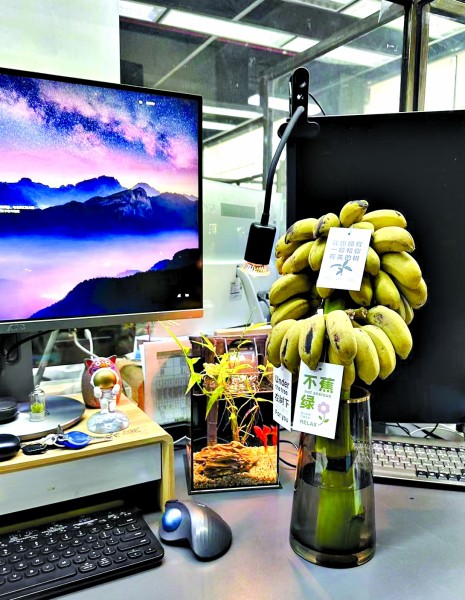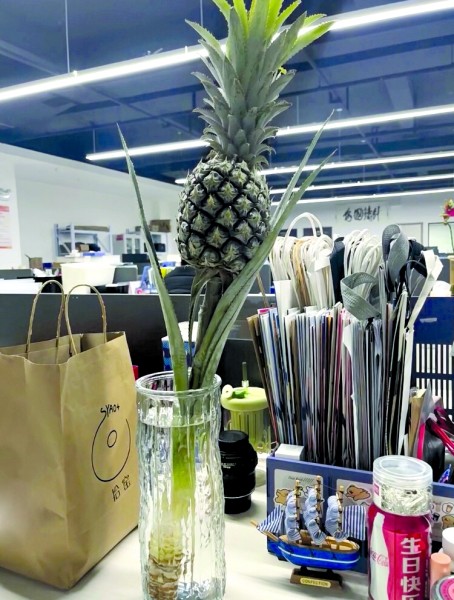 近期,在年轻群体中流行的爆改之风刮到了工位上,惹得一众打工人跟风布置办公桌,倒贴钱添置上班“搭子”。他们通过这种方式改善小环境,展示自己特立独行的气质,同时也拿捏职场情绪价值。那么,年轻人的办公桌上究竟都有些什么呢? 青年报记者 刘秦春 跟风爆改工位 年轻人添置上班“搭子” 目前,小红书上“改造”话题浏览量已经增长到34.2亿。出租屋、穿搭、妆造、老人鞋……爆改的盛行之风如今又刮到了当代打工人小小的一方工位上。或简洁或凌乱。“你的办公桌上有什么?”成了近期热门话题,浏览量达1.7亿。 由上海市人力资源和社会保障局、共青团上海市委员会联合发布的《上海市青年就业状况报告(2019)》指出,上海市就业登记信息系统的统计数据显示,在本市登记就业的16~35岁青年共有493.8万人。从所占的比重来看,16~35岁的青年约占全市登记就业人数的48.7%,为上海人力资源市场贡献了半壁江山。 然而,这届年轻人不喜“班味儿”,于是他们想方设法开始了有趣的班味消除计划,爆改办公桌就是其中最流行的方式之一。他们倒贴钱购买在办公桌上摆放的或可爱或搞笑的上班“搭子”,还种植一些花花草草,近期更是突发奇想水培香蕉、菠萝、小番茄等水果。 有趣的是,年轻人的工位上班搭子还有方便随时求救的各路神仙摆件,财神爷受到的喜爱最多。他们倒不是有多迷信,只是图个心理安慰罢了,寄托自己对工作和生活的美好希冀。白领小顾的办公桌上放有可爱版神仙,她希望好运时常光顾,自己一切顺利。 据国家二级心理咨询师于光瑞分析,爆改办公桌是年轻人改善环境的一种方式。工作环境一定程度上影响着人的工作状态。而单位的大环境一般无法为个人改变。因此年轻人想在自己的工位上创造一个舒适、愉悦的小环境,有助于调动和激发工作的积极性和创造性。 “拒绝蕉绿”大火 拿捏职场情绪价值 近日,上海女孩小叶购入了一盆特殊的绿植——“拒绝蕉绿”,这是最近在社交平台上大火的办公桌“搭子”。她也觉得有意思,便跟风了买了一串,放进透明的玻璃罐子里水培。小叶说,这个香蕉水培简单,买来后放到瓶子里,倒上一点水,每天看看水位,没水了就加点,很快就熟了。 自此,小叶每天在自己的社交账号上分享“蕉绿”的变化情况。第五天时,小叶发现香蕉一天天变黄,不再继续蕉绿了,她把熟了的香蕉一根根摘下来吃掉,甜甜的配下午茶正好。 听说熟了,小叶附近的同事都来找她聊天,顺便关心一下这盆绿植的成熟进度。上海的天气越发热了起来,香蕉熟得太快来不及吃她就送给其他同事,和同事们一起消灭工作上的焦虑。 “它寓意拒绝焦虑,能舒缓我工作时的情绪,也能带着小期待每天观察它成熟的过程,有点解压,而且熟了之后还能吃,吃不完送同事尝尝,也有利于处好同事关系,一举多得。”小叶告诉记者。 工作中的繁忙和压力常常给人带来负面情绪,布置办公桌不仅是为了装饰,更是一种情绪调节的方式。于光瑞分析道,像小叶办公桌上这些喜爱的小物品,能成为年轻人宣泄情绪、放松心情的工具,为他们提供了情绪价值,让他们得以暂时远离工作的压力,享受一段属于自己的时光。 除了香蕉绿植,小叶的办公桌上还有一些解压小玩具,她表示,布置办公桌,会让她对上班会有所期待,原本有些乏味的工作环境也增添了些趣味。 于光瑞也赞同这样的观点,按个人喜好装修的工位可以让年轻人在这一方小天地里获得短暂的归属感与安全感,将目之所及之处都变成自己想要的样子,在客观条件有限的情况下尽可能让自己感到舒适。这样,自己也更容易从工作中感到幸福。 养很酷的“绿植” 搭配年轻人特立独行的气质 杨三日是一名00后,从事企业宣传工作,负责新媒体运营,自称是个8G冲浪选手。她的办公桌上摆有文件栏,里面是她攒的几十个咖啡袋子。文件栏旁则是她用咖啡袋子DIY的收纳盒,盛放她的护手霜和办公用品等。收纳盒旁,两个显示屏上贴满了猫和老鼠的贴纸。 除了这些,小杨最爱的是她养的绿植,最近春天到了,开始拨弄一些花花草草,其中有铃兰、蝴蝶兰等。“养铃兰是觉得它真的很清新,不骄不艳,开得茂盛,看着就心情很好。蝴蝶兰则是公司送的。” 有趣的是,小杨还养了菠萝。她觉得在工位上养菠萝是一件很酷的事情,不仅能观赏,还能吃。“以前没养过,很配我特立独行的气质。”她说自从养了菠萝之后,每天上班时心情就变得非常好。“我的工位就像热带雨林一样,提前进入了春天。” “工位是职场人在单位的‘自留地’,在不太影响办公室整体形象的情况下,工位装饰可以彰显自己独特的个性、喜好和品位。”对此,于光瑞分析道。 小杨在等待菠萝成熟的过程中注入了她所有的耐心。收到菠萝的那几天,天气比较冷,她先把叶子修剪掉一些,剩了一两片。然后准备了一个高一点的花瓶,里面放了温水。因为打算种熟了之后吃它,所以她选择不放营养液。1到2天为它换一次水,大概两周后菠萝就开变始黄了,大的黄得快一些。 “不能全部变黄再吃,里面会烂,黄一半的时候就能吃了,小的比大的好吃。”对此,小杨已经有了自己的心得。接下来,她想要尝试养一大串香蕉。 同事感到新奇 桌搭成职场沟通新话题 于光瑞认为,办公桌上的有趣事物也可以成为同事之间除了工作外交流的话题,成为新的职场沟通的纽带和平台