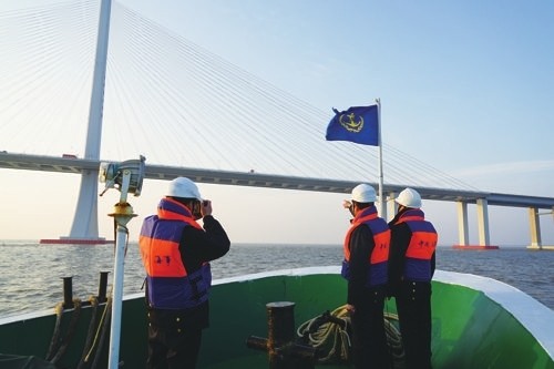 佘山岛在船尾的远处越来越小,直到消失在水平面上。返航的船只依旧劈风斩浪,边晓阳解释说,之所以上午前往佘山岛,就是借着涨潮的时间段,如今到了下午的退潮期返航,一样事半功倍。