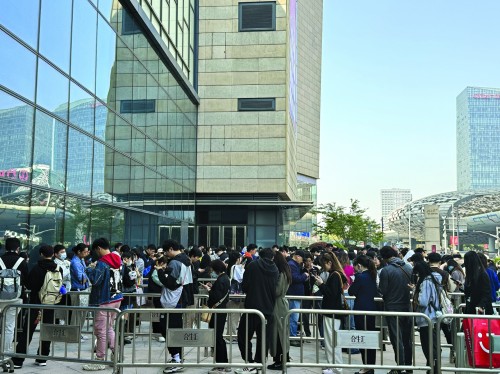 昨天凌晨6点多的五角场合生汇门口,似乎复刻了几天前的上海静安大悦城,几百号人排在翔殷路一侧,等待名创优品×Chiikawa主题快闪合生汇店的开幕。这些“新晋顶流萌物”由一群小可爱组成,售卖的周边涵盖毛绒公仔、生活用品、挂件等多款联名产品。有人为了买到限定周边夜排9小时,也有黄牛做起了预约名额的生意。 青年报记者 周胜洁 凌晨4:30排队没买到限定周边 合生汇的主题快闪店设在一楼中庭,售卖的周边包括公仔、挂件、生活用品等几十个品类,并有三款限定,包括坐姿公仔、睡衣站姿公仔和叠叠乐公仔。买满299元还送帆布袋,每天限量500个。 Chiikawa是根据日本漫画家Nagano的同名漫画改编的动画作品,译为小小的很可爱的家伙,国内也称之为吉伊卡哇。Chiikawa的主角团由乌萨奇、吉伊、哈奇(又称小八)等几个小可爱组成。每集只有一分钟的小动画,讲述小可爱们轻松愉快,又偶尔有些悲伤的故事,十分契合当下年轻人的生活状态和心理,小可爱们也成了当下Z世代年轻人最喜欢的表情包。 青年报记者上午10点根据商场开门时间到达时,排队领号的队伍已经填满了商场外十多道蛇行通道。根据现场提示牌显示,一早7:00就开始发放号码牌,8:00凭号码牌进入快闪店。现场50人一批放行,购物时间约20分钟。商场外排完后,进入商场还要排两个区域。上午10:15,商场保安拿着喇叭循环播放:“帆布袋已经送完,睡衣限定已经售罄。” 现场一位特意来买小八的女生说,她凌晨4:30顶着微冷的风来到现场时,前面已经有几百号人了,“没想到那么早来,进快闪店就被告知帆布袋已经送完,限定的睡衣站姿公仔也没了,我都没买到睡衣小八。” 而在社交平台上,发布夜排的人不在少数。有人前一晚深夜11点多带着垫子、薄被子开启夜排,而她前面已经有100来号人。有网友凌晨3:40和姐妹一起抵达“战场”,前方的蛇行通道里已经排满了人,“凌晨的上海太冷了,想借毯子,也需要充电宝。”也有网友对于夜排买周边感到离谱,“这只是个娃娃呀。”“尊重但不理解。” 实行预约后还有黄牛兜售名额 胡女士是为了上初中的女儿来合生汇的快闪店排队的,女儿喜欢小八,一只对待朋友真诚的话痨小猫,而这些小可爱的周边也是同学间社交的物品。昨天上午,她10点多排进队尾,一直到下午近1点才走进店铺挑选商品,“没想到要排2个多小时,我是分不清这些角色公仔,但孩子们特别喜欢。” 上个周末,她还带着女儿去了上海静安大悦城,那里是Chiikarra联名快闪店全国首站,还创下了单店10小时销售额268万元的历史新高。因为快闪首日夜排人数众多,从3月30日起定时开启预约通道,消费者先抢预约名额,再根据预约时间进快闪店。“下午6点,周围很多女孩在现场戳手机屏幕抢预约名额。还有黄牛在兜售预约名额,开价好像200元。” 在主题快闪店之前,中国的粉丝想要拥有小可爱的周边只能在二手平台上高价购买。记者打开某二手平台,日本代购的公仔开价不等,多数约200元,小只挂件也要100多元。如果遇到热门款式、限量商品,价格甚至要翻几倍。此次快闪店出售的商品目前在二手平台上也有加价出售,或是每个收取10%的代购费,或者直接加价10元-50元不等出售。