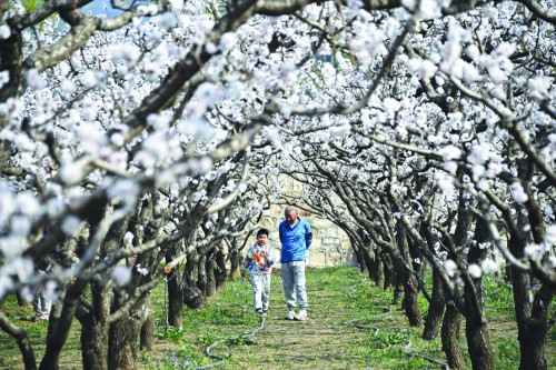 近日,北京市平谷区南独乐河镇北寨村的杏花绽放,吸引市民来到这里赏花游览,乐享美好时光。图为市民在北京市平谷区南独乐河镇北寨村观赏杏花。