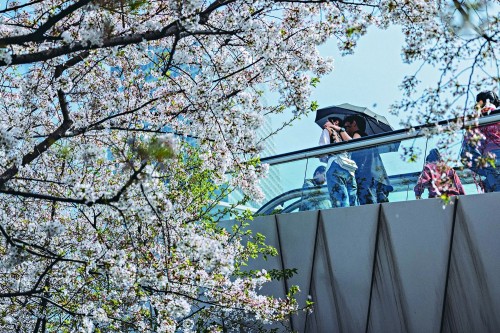 或许,每个城市的春天没什么不同,穿梭于花海的游人们也没什么不一样。甚至,当立于亭亭如盖的花树下,天际线顷刻消失之际,每个赏花人在心中的漫步也是殊途同归的。伤春是必然的,这是一个文学的亘古母题,古人已费无尽笔墨,我们甚至不必自己下笔,只需即兴拿来吟咏一番。“未开常探花开未,又恐开时风雨至。”元代诗人刘因的七言律诗当属客观,引颈盼望春花来到,花开了又忧风雨袭扰,这之于春季多雨的上海怕是非常受用的。 上海的每一寸春光何尝不让人未及沉醉便忙欲挽留?玉兰、樱花、桃花、海棠、山茶……一树树高过头顶的繁花是最令人惊叹的,缓缓俯身,极好辨认的郁金香和一众叫不出名字的低矮花朵也在脚边争奇斗艳,要是蹲下来,还能细细打量见证过恐龙诞生和灭绝的蕨类植物,《诗经》里就有女子“陟彼南山,言采其蕨”,原来其中不少还能够装点春天的餐桌。我们究竟是怎么闯入了这样一幅大自然画作? 回首冬日街景,高低错落的树木齐刷刷徒留光秃秃的细枝,这该是默默酝酿了多大的生命力呀?春天的呼唤下,它们却展现出了惊人的生命力,用繁茂的枝叶和绚丽的花朵装点了这座城市。 春天是揭开美好事物的过程,成就了一场具象化的幸福,大家只管赏心悦目。看花如此,看“魔都”亦是。不妨接着把刘因的这首《木兰花》念完吧,“花开风雨不相妨,说甚不来花下醉。百年枉作千年计,今日不知明日事。春风欲劝座中人,一片落红当眼坠。” 我们深爱上海的春天,因为它近在眼前,也因为在这个时刻,总有活力在萌动,总有希望在眼前。花开花落是常事,风雨变幻也是常事,但是我们心中的活力和希望大可不如常、不平常。不禁遥想美学家朱光潜于近百年前在《给青年的第十三封信》中的叮嘱,“慢慢走,欣赏啊!” 青年报记者 丁文佳