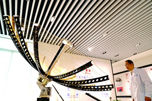 国家航天局4月12日消息,鹊桥二号中继星已完成在轨对通测试。鹊桥二号通过一个大型可展开的星载天线,实现月球背面与地球之间的信号传输。星载天线完全展开后,形如一把直径达4.2米的“金色大伞”。在广袤无际的茫茫太空,既硬核又浪漫! 这把“金色大伞”由东华大学产业用纺织品教育部工程研究中心研制。在该校实验室,记者见到了这把“金色大伞”的缩比模型,只见一根根圆弧状的“伞骨”支撑起一层薄如蝉翼的金黄色网状“伞面”。 “这张金属网就是星载天线的关键部位,能反射电磁波进行信号传输。这是用每根直径不到头发丝四分之一的金属钼丝,三根并在一起编织而成。”东华大学产业用纺织品教育部工程研究中心主任陈南梁教授介绍说。 目前,我国的卫星大型天线金属网研发制造全部环节已经实现国产化,关键核心技术牢牢掌握在自己手上。 据新华社电