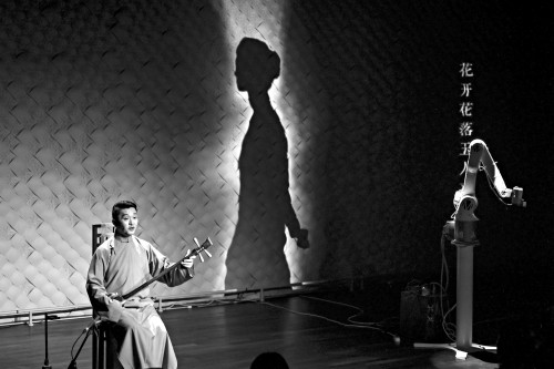 青年报记者 陈宏 本报讯 评弹与时代曲,前者诞生在明清时期苏州商业大都会的市民文化环境中,后者则诞生在上世纪二三十年代上海国际化城市的市民文化环境中。两者相融合,会是怎样的一番景象?4月17日-18日晚,作为凯迪拉克·上海音乐厅“数字缪斯——2024音乐科技融创节”展演板块第三台演出,观众们熟悉的上海评弹团团长高博文携手高科技的“机械臂歌手”,呈现了一场别具一格的“漫歌行——AI叙事音乐会”,双方展开了一场跨越百年时空的对话。 主创告诉记者,现场音乐分为AI音乐创编与经典评弹曲两部分呈现,注入“机械臂歌手”的AI音乐创编由德国音乐人约翰·尼格尔与中国音乐人邓晴携手,利用AI等数字技术,通过搭建《漫歌行》数据库、训练符合主题和创作需求的AI模型、生成音乐素材、作曲编曲再创作等尝试,最终“复活”时代曲女歌手“艾莉”,现场“演绎”《苏醒》《回头皆幻景》《繁华如烟》《重逢如是》《涅槃》《重逢》等多首曲目。这部分基于时代曲的再创作,也是音乐团队向严折西、周璇、姚莉等时代曲的创作者与表演者们的致敬。 而“机械臂歌手”艾莉本身作为女主角,主创团队通过动作编排、深度图像采集、智能照明、实时演算等不同技术进行了创造性整合开发。同时,配合真实资料、模型与文字,基于原创剧本进行的数字化设计创作而成的影像设计,使得“艾莉”在音乐会中得以将声音、影像、动作等流畅地支持演出中的艺术呈现。