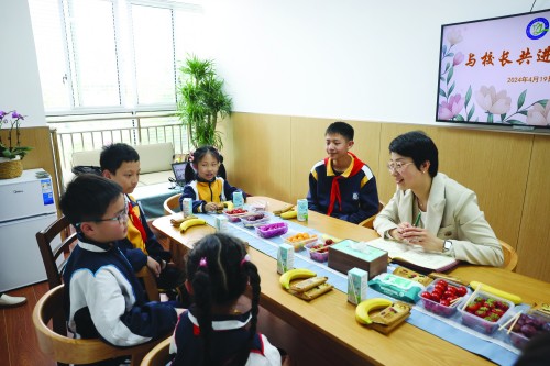 下午茶很多人都吃过,但你和校长一起吃过下午茶吗?最近,宝山区多所学校陆续开展了“校长下午茶”活动,各年级学生代表与校长围桌而坐,反映心声、提出困惑。 在上海大学附属中学实验学校的“与校长共进下午茶”现场,九个年级的学生代表在校长许杰面前边吃水果点心边“犀利”发问:语文练习题能不能简单点?课后拓展班能不能增加体育项目?午餐时能不能多加点大家喜欢的番茄炒蛋?女生厕所坏掉的隔间能不能尽快修好?一系列意见和建议,都是学生关心的问题。 青年报记者 刘春霞 关于课程安排 “语文练习题能不能简单点?这个学期一次都没全对过。” “我们希望每天都能有些时间去参加一些运动,哪怕是大课间下楼走走对我们来说都是一种放松。” 草莓、金桔、香蕉、番茄、李子、火龙果……走进上大附中实验学校会议室,只见桌上摆满了各种水果。学生代表来到会议室后,校长许杰笑着招呼大家。此次“校长下午茶”,学校九个年级各推选了一名学生代表参加,简单自我介绍后,大家就直奔主题。 “语文练习题能不能简单点?这个学期一次都没全对过。”一年级学生龙瑾卿吃着香蕉说道。许校长问她:“你们班同学有全对的吗?”“有是有,但很少,也就一两个。”许校长随即告诉她,这是非常好的建议,大家都想全对,但如果没全对其实也没关系,“我们可以找出自己错的地方,把不懂的搞懂,就是最好的。” “放学后的拓展班,能不能再增加一些体育类活动?比如足球、羽毛球、篮球之类的。”五年级学生管翀说,以前上过不少体育类活动,但这个学期变成了十字绣、绘本等。对此,许校长答复说:“我们的体育老师每个人都有自己的专长,在不同的年级会开设不同的校本课程。你们的需求校长知道了,可能接下来我们会引进外面的资源开设一些社团。” 同样希望多开体育社团的还有四年级学生周睿思,而二年级金晨希则反映,最近好几节体育课都被其他课占了。“你们体育老师是不是王老师?”许校长问。得到肯定回答后,她解释起了原因:“最近几天,九年级的哥哥姐姐们在体育中考,我们学校有3位体育老师去监考了,所以他们的课只能由其他任课老师代上。”许校长明确表示,3位体育老师回来后,“欠”下的体育课都会补上。 尽管面临着中考的压力,但九年级的同学们仍很在意体育课。“我们希望每天都能有些时间去参加一些运动,哪怕是大课间下楼走走对我们来说都是一种放松。”许校长立即表示:“体育中考后,我会尽量多给你们一些户外活动、放松的时间。” 关于学校设施 “那个门开关的时候声音很大,我每次去交作业,门一开就打破安静的环境,很影响老师办公,但作业又必须交。” “学校的井盖能不能质量好一点?上次我一下子就踩爆了一个,都水漫金山了。” “前几天我在操场跑步时,踩到了跑道上的一块凸起,摔了一跤,希望学校能及时把操场翻新一下,避免学生活动时出现意外。”六年级孟令泽同学提出的这个问题,许杰校长也没有回避:“我们的操场已经到了要大修的时间,因为沉降、暴晒等原因,操场上有一些开裂的情况,学校已经提上日程,今年暑假就会进行大修,下个学期你们就能在全新的操场上进行各种体育活动了。” 三年级的陈诺同学注意到了数学老师办公室的门有问题:“那个门开关的时候声音很大,我每次去交作业,门一开就打破安静的环境,很影响老师办公,但作业又必须交。”看到陈诺这么暖心,许杰立即记下来:“稍后我就跟总务处说,让他们给这个门加点油润滑一下。” “学校的井盖能不能质量好一点?上次我一下子就踩爆了一个,都水漫金山了。”二年级金晨希同学话音刚落,许校长就惊讶地问:“是你踩爆的啊?”原来,几天前,她在外开会时接到老师通报,一个学生在学校枇杷园从凳子上往下跳,踩裂了一个塑料井盖,并导致下面的水管爆裂。面对“肇事者”,许杰耐心解释:“我们学校建校已经18年了,水管的使用年限确实比较长了,后续会陆续进行调换。”但同时,她也对金同学的安全意识淡薄提出了批评。 关于午餐 “米饭能不能多煮一会,加菜能不能多加一点,尤其是大家都很喜欢的番茄炒蛋、麻婆豆腐、土豆片这些。” 午餐问题也是同学们关注的热点,一年级龙瑾卿同学提出,午餐的汤能不能增加鱼汤,其他同学立即反对:“鱼汤容易卡鱼刺!”许杰校长也跟她解释,学校的用餐首先要确保安全,其次要保证营养,为此,食堂所有食材都是有溯源机制的,每天的午餐也都会留样,“学校的午餐是大锅菜,与家里烧的菜相比,口感上肯定会打点折扣。” “米饭能不能多煮一会,有时候会比较硬。”八年级王琪涵说。“加菜能不能多加一点,尤其是大家都很喜欢的番茄炒蛋、麻婆豆腐、土豆片这些。”二年级金晨希说,炸的东西可以少一点,但大家爱吃的最好“多多益善”。对此许校长表示,这几个菜已经是加量了,但架不住大家爱吃,“我会跟阿姨说再加点量,虽然你们喜欢吃,但也不能天天吃。” 陈佳扬坦言,在学校吃了这么多年饭,知道有几个汤很好喝,但有时自己喝完一碗想出去再添时,阿姨已经把汤桶收走了,“希望阿姨晚点收汤桶,另外,在菜品可以选择的情况下,希望可以减少一些海鲜类食材,因为会比较腥。”对此,许校长也表示,此前收到过九年级学生关于这方面的反映,“我会跟食堂反馈一下。” 关于课外活动 “
