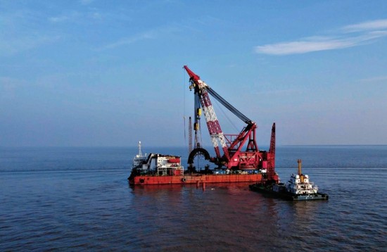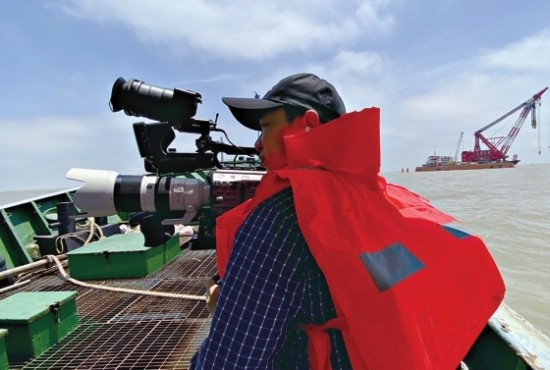 摄制团队在“长江口二号”打捞现场拍摄。青年报记者 施培琦 摄
