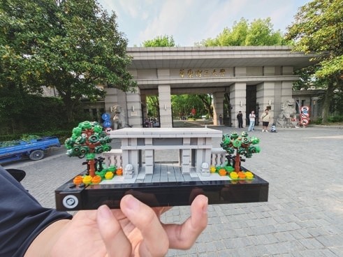 梅陇路130号的华理校门,亦在自己亲手搭建积木中将这份美好的思绪编织得更为清晰。正式量产的积木在校门上出现的“华东理工大学”6个字,门前两棵玉兰树,无不让人对现实的高还原度会心一笑。
