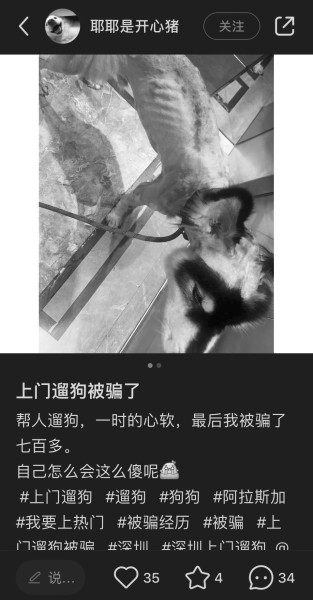 最近,互联网上掀起一股上门遛狗喂猫的热潮。上门喂猫遛狗、亲密接触,一面被猫猫狗狗“萌化”,一面还能小赚一笔钱,这让部分年轻人纷纷在各平台上发帖招揽顾客,也有人在投入之后发了“劝退贴”。带薪撸宠,真的有看上去那么幸福吗? 青年报实习生 林千惠 记者 周胜洁 新热潮 “我小时候也养过一条叫见见的狗,但当时没照顾好它,我很内疚。现在有机会,我希望给需要照顾宠物的主人提供帮助。” 上门遛狗喂猫的话题在社交媒体热炒不断。点开某个社交平台,“上门遛狗”高达4.2亿次播放量,而“上门喂猫”更有4.6亿次播放量。标签里,各大博主热情地与粉丝分享这门兼职心得,或是“萌到融化”,或是遇到搞笑事,评论区纷纷点赞,其中不乏新奇和惊讶的感叹:“居然还有这种好玩的兼职,我也好想做!” 00后周依依便是被此吸引加入的新成员。她在社交平台上发布了接单信息,打算在松江区、闵行区做上门遛狗喂猫服务。她向记者推荐她喜欢的博主“阿喵爱撸猫”。在“阿喵爱撸猫”的主页里,“上门遛狗”的视频已做到近百期,成为一个长期系列。“她会发布上门喂养的视频,看着她的视频,我认识了很多可爱又单纯的小动物,很快就能建立好感情。”周依依对这份兼职十分憧憬。而作为大学生,一名养宠者,她也一直想探索新兴行业,“上门遛狗”这个热门话题,给了她方向和思路。 阿拉斯加、金毛、蓝猫……2003年生的陆羿一口气向记者发来好几个视频。他十分珍爱他的“小客户”们。视频中,他刚去客户家,还未开门,高大的阿拉斯加就亲昵地摇着尾巴等他来遛它;他伸出手,小猫就乖乖躺下让他摸肚子。“我最爱的猫是胖胖,还有那只名为富贵的狗。”他对喂养的宠物们如数家珍。在陆羿看来,这门职业要把他“萌化”了,他满足地表示:“它们都超级可爱,就算第一次见面也会跟我贴贴。” 和周依依类似,陆羿开始做这一行,也是在抖音上偶然发现了这一话题。能赚钱,自己又爱狗,对他来说是一举两得。“我小时候也养过一条叫见见的狗,但当时没照顾好它,我很内疚。现在有机会,我希望给需要照顾宠物的主人提供帮助。”开始这份工作后,陆羿不仅更爱狗了,他对“喵星人”也宠爱有加。因为头一次上门,客人家的小猫便对他十分亲昵,让他整个人萌化了。 陆羿接单范围为青浦区和松江区,有自己的一套工作规则。在工作开始前,他会先与宠物主人沟通,了解宠物的性格、品种,判断是否可接单。根据陆羿的价格表,喂猫是固定价格,但遛狗的收费标准因公里数而有所不同。 新问题 “我算过一笔账,春节期间,我负责喂猫遛狗共24家,总计上门167次,每天工作时长6-12小时。每天需要我爸开车带我,不然根本忙不完,很耗体力。” “发布帖子良久,却一直没有客人来找我。” “我不会把它作为我主要发展的一个方向,只是想尝试一下。” 但陆羿也承认,上门喂猫遛狗并非完美,时有状况发生。最常见的是卫生情况,比如猫主人猫砂未彻底清理干净,小猫会到其它地方排泄。此外也有突发状况,一次客户家大门无法关紧,又未告知陆羿,吉娃娃钻门跑了出去,陆羿下楼找寻许久,最后急中生智,用猪肉脯哄骗一番才唤回它。此外还要考虑通勤路程、各个客户家之间的距离等,工作量其实挺大。“我算过一笔账,春节期间,我负责喂猫遛狗共24家,总计上门167次,每天工作时长6-12小时。每天需要我爸开车带我,不然根本忙不完,很耗体力。” 春节是陆羿生意最好的时候,14天他赚了5000元。虽然目前他有一定的稳定客源,但近几个月客单量还是在下降。“可能不在节假日,客户不太会出远门,需求量相对较小。我开学后,能抽空兼职的时间也不像假期时那么多。” 如果陆羿的感受是忙,那么周依依的感觉也许是闲。上门遛狗喂猫并非她想象中那么容易上手。周依依在社交媒体上共发布了两次上门遛猫喂狗的兼职信息,半个月下来,总共有三单找上门,但她没及时发现,还因其他原因,最终这些单子没能成。另一位在5月初发帖想要接单的网友Clocoik则沮丧地表示:“发布帖子良久,却一直没有客人来找我。” 记者在某二手购物交易平台搜索“上海喂猫遛狗”关键词,在发布的帖子里,最高“想要”数为97,收藏量为11,而中位数“想要”数约为40-50,大多数服务未有“想要”和“收藏”数,而被收藏较多的卖家,他们或是专门从事宠物服务行业的人员,上门遛狗喂猫是附带服务例项,或是身兼数职、提供多项服务的自由职业者。总体而言,虽然上门遛狗喂猫话题很火热,但落实到实际,需求量并未能匹配火热的网络话题声量。正如周依依所言:“我不会把它作为我主要发展的一个方向,只是想尝试一下。” 新“雷区” “如果在上门喂猫遛狗过程中发生纠纷,很难划分责任。比如猫狗伤人,在没有合同的情况下,需要根据具体情况判断个人的过错是非。换言之,在没有正式合同和协议相关规定的情况下,双方的权益只能按照基本的民事法律来解决,对责任的划分和判断既费时又费力,如过程中双方相关利益受损,很可能得不到赔偿,或自行承担。” 记者在分别搜索“上门喂猫”“上门遛狗”时,发现了不少劝退贴。一方面,不少狗主人抱怨找不到好的上门喂猫和遛狗人。且由于上门喂猫遛狗需要进入自家,主人也对陌生接单者十分警惕。另一方面,接单者也难免被“坑”。网友“耶耶是开心猪”发
