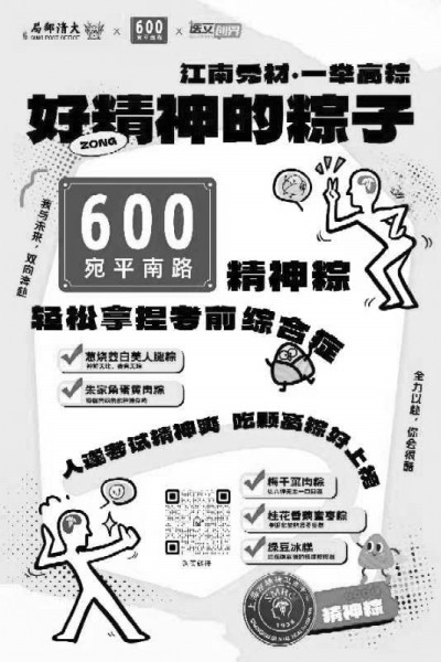 “精神粽”——寓意美好,希望莘莘学子能“一举高粽”。今年端午节前夕,上海宛平南路600号又“上新”了! 昨天,记者从上海市精神卫生中心获悉,该院联手上海市青浦区朱家角大清邮局,一起推出“精神粽”。这份在端午节期间送出的惊喜,更是为即将参与中考、高考的学子送上祝福,希望他们能轻松拿捏考前综合征,“一举高粽,金榜题名”。 青年报记者 顾金华 “精神粽” 又一款联名爆款 宛平南路600号,上海市精神卫生中心徐汇院区所在地。这两年,它频频“出圈”,从“600号月饼”“600号口罩”,再到表情包、咖啡……借助有趣的文创产品和新潮玩法,宛平南路600号这个神秘的医疗机构越来越被大众熟悉。而这次推出的“精神粽”背后又有着怎样的故事? 谈及为何与大清邮局合作文创产品,上海市精神卫生中心宣传科科长乔颖告诉记者,对于所有学子来说,即将到来的中考和高考,是他们读书生涯中的两件大事。“考试前考生难免会出现紧张情绪,有些甚至会焦虑。600号在考前推出有趣的文创产品,一方面可以减缓考生的紧张情绪,另一方面也希望可以通过这些文创产品去营造轻松诙谐的氛围,大家一起来为考生送出祝福。” 这次,是不是可以再次通过“跨界”设计出特别的文创产品呢?最初,上海市精神卫生中心通过上海市文化创意产业促进会找到上海朱家角大清邮局时,双方就一拍即合,大家想着通过粽子来做一些创意。记者了解到,始建于1903年的上海朱家角大清邮局是华东地区唯一一个从清朝开到现在的邮局旧址,至今已有120余年历史。 “对方设计师提出了‘一举高粽’的理念,这个非常契合我们的想法,端午节吃粽子是中国的传统文化和习俗,而今年中考和高考也都即将来临,我们希望广大考生,可以在考前品尝到‘精神粽’的同时,能拥有一个好心情和积极的精神状态去迎考。”乔颖告诉记者。 在“精神粽”上市前,上海市精神卫生中心专门通过医院微信号对外征集了大家送给考生的祝福语,网友也给考生送来了大量祝福,最后精神卫生中心选取了其中的两句话,制作成海报,印在“精神粽”的包装上。其中一句是“我与未来,双向奔赴”,还有一句是“全力以赴,你会很酷”。 “精神粽”的口味也有多种,包括朱家角蛋黄肉粽、梅干菜肉粽、桂花香藕蜜枣粽等。记者了解到,这两天,得知了有该款粽子的市民,纷纷都在打听“精神粽”的购买方式。目前,这一“精神粽”可以通过朱家角大清邮局进行线上线下两个渠道购买。 粽子的背后 更是一颗定心丸 从“600号月饼”“600号画廊”“600号精神小虎”“600号口罩”等到后面的“乐+精神”联名款咖啡,带有“600号”logo的文创产品越来越多地进入大家眼帘。通过一次次跨界合作,“600号”这个IP逐渐闯出了一片天。 “600号”不断“祛魅”的过程,也正是上海这座健康之城的海派文化底蕴不断丰富的过程,更加凸显了城市的包容,开放,睿智。“在上海,只要你有好的想法,就一定可以实现。在大家印象中,‘600号’不再是只针对精神疾病患者的医院,而是守护所有人心理健康的家园。跨界合作如今是一种常态,而600号更要接住时代的使命感。”乔颖说,不管是口罩这样的生活用品,还是脑洞大开的“艺术表情包”,每一次联名产品的背后,都没忘记传递“600号”背后呼吁关注人们精神世界的内核。 乔颖说,随着社会的进步,她能明显感受到,越来越多的年轻人喜欢600号的文创产品,也愿意直视自己的心理问题,他们对心理健康服务的接纳与开放度明显高于父母辈。 记者了解到,去年这个时候,为了给考生打气,上海市精神卫生中心与上海种业联手,在上海交大文创学院创意团队等多方支持下,为大家准备了一个特别的礼物——中高考打气花盆。 其中,向日葵种盆代表着“浇好运”。向日葵又叫朝阳花,小小的种子等待着你去播种成长,犹如你的青春,即使受伤,依然奋力向上生长;而百里香种盆代表着“想开了”,百里香的花语是“勇气”,带着它出征在考场有如勇士取得胜利。 “最近在门诊上,会有很多焦虑的考生前来咨询,有人说‘想到马上就要考试了,我就紧张’,还有的考生紧张到睡不着觉。”乔颖告诉记者,事实上,除了考生外,很多家长也同样存在焦虑的情绪。在紧张的中高考倒计时阶段,600号此次推出的文创产品,就是希望学子和家长都要调整好心态,把身体照顾好去参加考试。也许结果不一定能完全达到预期,但是只要付出自己百分百的努力,将来就不会留下遗憾。“精神粽,不仅仅是个粽子,我们更希望能给考生家庭送去一颗颗定心丸。”