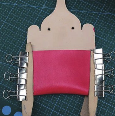 在皮具的世界中,存在着千万种可能。脑洞象工作室就是这么一家致力于皮具手作的工作室,有着对皮具无限的热情和创造力。第一期“手工教室”,就让我们跟随着脑洞象来做一个小象零钱包~ Step 1 粘合 底部从下往上量7.5cm,确定折痕线 折痕线以下两侧边缘涂上白胶,沿折痕线对折 垫上皮料,用长尾夹固定 Step 2 打斩 间距规调至0.3cm,在粘好的小象钱包上压上等距线 用菱斩沿等距线打孔起始 Step 3 缝合 针尖插入线股中间,短线头一端穿入针孔中 向上回针,且每针在线根部用锥子涂点白胶,拉紧线,多余白胶尽快擦掉 回针两针后,用剪子将线贴根剪短 Step 4 边缘处理 打磨条或砂纸磨去不平整的地方 用棉签粘皮床处理剂,均匀地涂在边缘处 用打磨棒打磨边缘,直至边缘光滑 本期手作教师: 我们是脑洞象工作室,致力于手工皮具私物定制。工作室是由一对90后的夫妻创办的,两夫妻恰巧都是典型的水瓶座,把水瓶座想法天马行空脑洞大这个特性发挥得淋漓尽致,正好男生喜欢大象,脑洞象工作室也因此得名。希望脑洞象不单单做好皮具,更能把皮具生活的理念,浸润到人们的生活中。让大家能重视手工皮具,了解手作的魅力,打破皮具是高高在上的思维定式。同时也为传统的皮具推陈出新,走出皮具就是大包包小包包钱包的框架,手工皮具也可以是很有趣味性的。