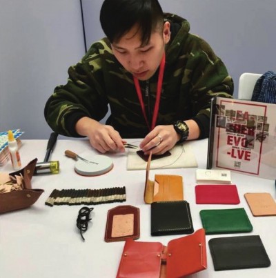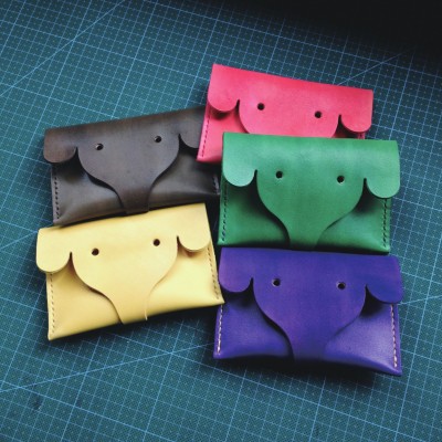 在皮具的世界中,存在着千万种可能。脑洞象工作室就是这么一家致力于皮具手作的工作室,有着对皮具无限的热情和创造力。第一期“手工教室”,就让我们跟随着脑洞象来做一个小象零钱包~ Step 1 粘合 底部从下往上量7.5cm,确定折痕线 折痕线以下两侧边缘涂上白胶,沿折痕线对折 垫上皮料,用长尾夹固定 Step 2 打斩 间距规调至0.3cm,在粘好的小象钱包上压上等距线 用菱斩沿等距线打孔起始 Step 3 缝合 针尖插入线股中间,短线头一端穿入针孔中 向上回针,且每针在线根部用锥子涂点白胶,拉紧线,多余白胶尽快擦掉 回针两针后,用剪子将线贴根剪短 Step 4 边缘处理 打磨条或砂纸磨去不平整的地方 用棉签粘皮床处理剂,均匀地涂在边缘处 用打磨棒打磨边缘,直至边缘光滑 本期手作教师: 我们是脑洞象工作室,致力于手工皮具私物定制。工作室是由一对90后的夫妻创办的,两夫妻恰巧都是典型的水瓶座,把水瓶座想法天马行空脑洞大这个特性发挥得淋漓尽致,正好男生喜欢大象,脑洞象工作室也因此得名。希望脑洞象不单单做好皮具,更能把皮具生活的理念,浸润到人们的生活中。让大家能重视手工皮具,了解手作的魅力,打破皮具是高高在上的思维定式。同时也为传统的皮具推陈出新,走出皮具就是大包包小包包钱包的框架,手工皮具也可以是很有趣味性的。