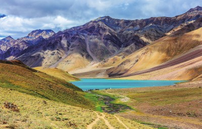 这一天格外漫长,等抵达思比提行政中心小镇Kaza的时候却已经是深夜了。路上的风光让我印象深刻,正如仅能查到的那点旅行资料中所描述的那样:思比提比拉达克更加崎岖和偏远。地面像月球表面一样凹凸不平,它们的存在就像海市蜃楼。中途我们还前往了Chandratal(月亮湖)作了约2个小时的小徒步。在返回主路继续奋进的时候,我们还让一对以色列情侣搭了“顺风车”。