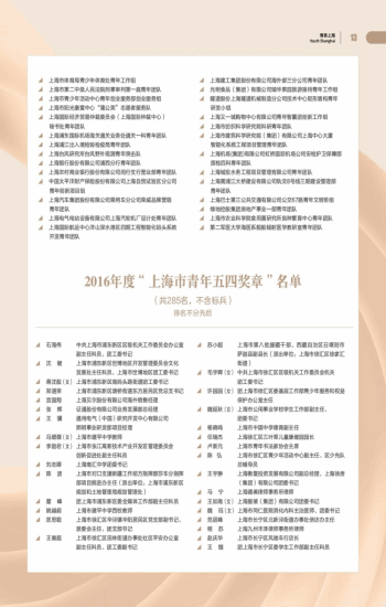 ◢ 上海临港·南汇新城镇“蓝精灵”青年志愿者团队 ◢ 上海市浦东新区花木街道思学青年读书会 ◢ 上海中医药大学附属第七人民医院急诊科医护青年团队 ◢ 上海浦东发展集团财务有限责任公司金融部青年突击队 ◢ 上海市浦东新区浦兴路街道社区事务受理服务中心青年突击队 ◢ 上海市新陆职业技术学校“手拉手”青年志愿者服务队 ◢ 浦东12355青少年公共服务平台 ◢ 上海浦东新区全欣公益服务中心青年志愿队 ◢ 上海中致社区服务社新场社工组青年团队 ◢ 上海市徐汇区凌云街道青年社工驿站青年团队 ◢ 上海市徐汇区劳动人事争议仲裁院青年团队 ◢ 上海市徐汇区人民检察院公诉科青年团队 ◢ 上海市田林第三中学德育青年团队 ◢ 上海市第一师范学校附属小学“快乐哥们”男教师青年团队 ◢ 上海市公安局长宁分局虹桥路派出所青年团队 ◢ 上海市长宁区小教第二学区“星青年”青年团队 ◢ 上海市长宁区天山路街道社区事务受理服务中心青年团队 ◢ 上海市长宁区华阳街道综治工作中心青年突击队 ◢ 中环投资开发(集团)有限公司红旗村“城中村”改造青年突击队 ◢ 上海中环国际中小企业总部社区投资有限公司青年团队 ◢ 上海市晋元高级中学化学教研组青年团队 ◢ 上海市阳光社区青少年事务中心普陀工作站青年团队 ◢ 上海市虹口区图书馆总馆读者服务中心青年工作组 ◢ 上海中医药大学附属上海市中西医结合医院脉管病科青年医护团队 ◢ 上海市虹口区劳动人事争议仲裁院青年工作组 ◢ 上海市杨浦区税务局第一税务所青年团队 ◢ 上海市杨浦区中心医院心内一科重症监护室青年团队 ◢ 上海市杨浦区房地产交易中心登记窗口青年团队 ◢ 上海市杨浦第二房屋征收服务事务所有限公司青年突击队 ◢ 上海东鑫电力工程安装有限公司工程项目青年团队 ◢ 上海市黄浦区海燕博客公益发展中心青年团队 ◢ 上海交通大学医学院附属瑞金医院卢湾分院放射介入青年突击队 ◢ 上海古今内衣集团有限公司研发中心青年团队 ◢ 上海市向明中学女子篮球队青年团队 ◢ 上海市公安消防总队黄浦支队车站中队青年团队 ◢ 上海市公安局静安分局交警支队第二责任区武定武宁青年岗组 ◢ 上海沪港建设咨询有限公司计量青年团队 ◢ 海市静安区临汾社区美发行业业主爱心联席会青年团队 ◢ 上海市大宁国际小学微笑辅导员青年团队 ◢ 上海市静安区人民检察院未成年人刑事检察科青年团队 ◢ 上海行健职业学院青年志愿服务队 ◢ 上海市宝山区庙行镇社区青年志愿者服务队 ◢ 上海大学附属中学“心海扬帆”青年志愿者服务队 ◢ 上海市闵行区华漕许浦社区服务管理协会青年团队 ◢ 上海市闵行区“心红团”青年志愿服务队 ◢ 上海市闵行区颛桥镇卓安基诺艺术文化服务中心画香笔香公益青年志愿队 ◢ 上海市嘉定区南翔镇青年知识分子联谊会 ◢ 上海市嘉定区妇幼保健院妇科病区青年突击队 ◢ 上海市嘉定合恩公益救援中心青年团队 ◢ 上海同济黄渡小学“蒲公英”少先队教研组青年团队 ◢ 上海市公安局金山分局交警支队第一责任区大队青年团队 ◢ 上海市金山区政府办公室“金府斯文汇”青年团队 ◢ 上海市金山工业区社区事务受理服务中心青年讲师团 ◢ 上海石化工业学校青年龙狮队 ◢ 上海市金山区廊下镇“相约宅基”青年团队 ◢ 上海市松江区爱心助困志愿者协会青年团队 ◢ 上海市松江区泗泾镇新凯社区青年管理团队 ◢ 上海华测导航技术股份有限公司北斗青年突击队 ◢ 上海元祖启蒙乐园有限公司筑梦青年服务队 ◢ 上海金发科技发展有限公司青年研发先锋队 ◢ 上海市奉贤区中心医院青年科创集体 ◢ 上海市奉贤区青村镇生态环境综合整治青年突击队 ◢ 上海市奉贤区柘林镇城市网格化综合管理中心青年突击队 ◢ 上海市奉贤区实验小学少先队青年辅导员组 ◢ 上海市崇明区看守所女监中队青年团队 ◢ 上海市崇明区堡镇青年志愿服务团队 ◢ 宝钢特钢有限公司青年建功团队 ◢ 上海中远海运油品运输有限公司桐林湾轮青年团队 ◢ 东方航空技术有限公司虹桥维修基地定检维修部结构修理青年工作组 ◢ 上海世博会博物馆青年突击队 ◢ 上海市新闻出版局青少年读书网青年团队 ◢ 上海广播电视台融媒体中心Knews中心国内新闻部青年团队 ◢ 上海广播电视台上海炫动传播动漫影视中心青年团队 ◢ 上海报业集团财务管理部青年突击队 ◢ 解放日报社青年团队 ◢ 上海歌剧院舞剧团青年团队 ◢ 中国科学院上海技术物理研究所第二研究室量子项目组青年团队 ◢ 中国电子科技集团公司第五十一研究所机载侦察项目青年团队 ◢ 中国疾病预防控制中心寄生虫病预防控制所疟疾室青年团队 ◢ 上海市疾病预防控制中心免疫规划青年工作组 ◢ 中国国际应急医疗队(上海)青年团队 ◢ 上海市食品安全投诉举报受理中心青年先锋队 ◢ 上海市第十人民医院内分泌肾脏科青年集体 ◢ 复旦大学青年智库青年团队 ◢ 上海交通大学医学院附属仁济医院南丁格尔志愿护理青年服务队 ◢ 上海交通大学医学院附属第九人民医院南部挂号收费处青年团队 ◢ 同济大学建筑与城市规划学院2013级建筑学四班青年团队 ◢ 华东师范大学孟宪承书院彩云支南志愿服务青年团队 ◢ 华东理工大学洁净煤技术研究所青年团