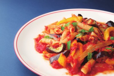 意大利料理一直以健康简单而闻名,这款纯蔬意面选用了新鲜的当季蔬菜,简单烤制后加入番茄中炖煮,口感清新无负担,满满的春天气息。配上裹满芝士的鸡肉卷,享受惬意的意式田园风吧。 春季时蔬意面(两人份) 用料: 茄子1根,甜椒一只,洋葱半个,斜管面250g,番茄罐头 500g,盐,黑胡椒,橄榄油调味。 做法: 1.蔬菜切成条,加盐、黑胡椒、橄榄油调味,200℃烤20分钟; 2.大锅内烧开2L的水,水沸腾后加入20g食盐,倒入意面煮10分钟左右; 3.另起一锅,加入橄榄油,倒入番茄酱,用小火煸炒,再把烤熟的蔬菜加入锅中继续煸炒; 4.将煮好的意面捞出,直接倒入煸炒番茄酱和蔬菜的锅中,继续一起煮上1分钟,如果偏干可以加一些煮面的水; 5.最后盛出,淋一些橄榄油,撒一些薄荷叶或者罗勒碎就完成啦。 意式鸡肉卷(两人份) 用料:鸡小胸100g,帕马森奶酪碎30g,大蒜2瓣,鸡蛋1个,面包糠 50g,盐、黑胡椒调味。 做法: 1.在鸡胸肉上下都垫上保鲜膜,用擀面杖轻轻打薄。撒上盐、黑胡椒、蒜末、帕马森奶酪调味。(喜欢拉丝的朋友可以换成马苏里拉芝士); 2.用竹签将鸡肉卷成条状,注意确保将鸡肉捏紧,防止在加热过程中鸡肉散开; 3.将鸡肉卷裹上一遍蛋液,再裹上面包糠。适当剪短竹签便于下锅煎炸; 4.不粘锅倒入适量的油,中火煎至表面金黄即可,出锅后用厨房纸吸油保证松脆的口感就完成啦。