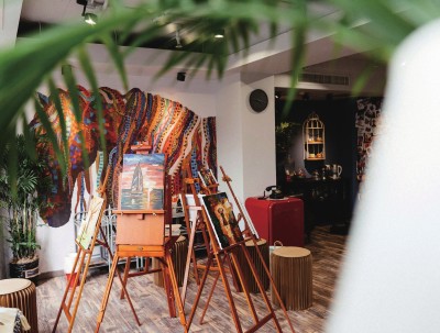 静游艺术是沪上知名艺术空间,成立于2013年,专注于美术普及教育。静游艺术创始人Norman师从书画大家陈穆之,在画室里,就摆放着陈穆之的四幅油画大作。画室从前期的准备、装修,到如今的运营、管理都是由Norman一手打理。极具欧式工业风的画室中,配齐了画画所需的物品,进门左手边一整排五颜六色的颜料排列得整整齐齐。复古气息满满的吊灯、镜框、沙发随处可见。画室一侧原本空白的墙面上,被安上了块油画布,大胆的用色绘就了一匹桀骜不驯的烈马。