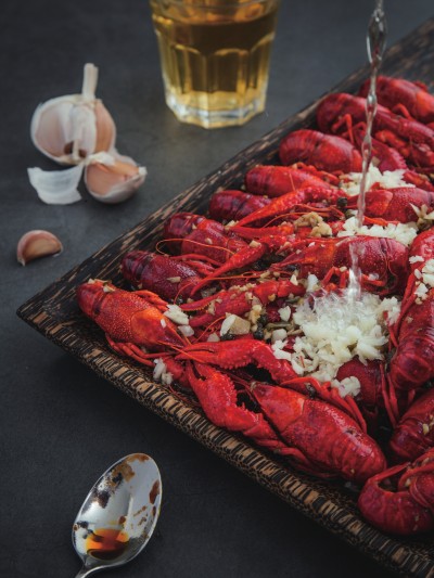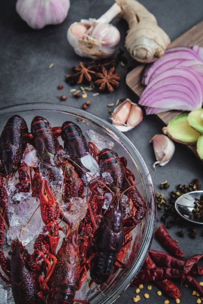 自从有了麻辣小龙虾,上海的夏天变得越发火热,小龙虾的身价都飞涨了十几倍。火辣热情的小龙虾配上一打啤酒,三五好友让夜晚变得精彩。看起来好像很复杂的小龙虾料理,其实简单到让人匪夷所思。我们从大厨手里拿来了最“高精尖”却速成的小龙虾烹饪方式,零基础的厨房新手也不怕学不会。从此,包装简陋的外卖和大排长龙的龙虾店,都要和你说“再见”啦。 麻辣小龙虾 用料: 小龙虾500g、干辣椒适量、鲜辣椒适量、花椒适量、香叶2片、八角1颗、洋葱1/4只、大蒜3瓣、啤酒1罐、郫县豆瓣酱1大勺、老干妈1大勺、生抽适量 做法: 1.小龙虾洗净之后过油。锅中下油,放2-3瓣大蒜、姜片、一半量的洋葱、2个干辣椒中小火煎至油热放入龙虾炸至变红,捞出; 2.另起一锅,倒入少许油,加入洋葱末、花椒、干辣椒和鲜辣椒爆香,然后加入豆瓣酱炒出红油; 3.加入小龙虾翻炒,注意火候防止酱料变焦。翻炒均匀之后倒入一整罐啤酒,放入香叶和八角; 4.煮沸后加入老干妈、盐、糖、生抽调味,可以先尝一下汤汁再进行调整,豆瓣酱本身就比较咸,这个时候尝咸度可以不用太咸,因为之后收汁会变咸; 5.调小火力,炖10-15分钟入味; 6.火调至最大,开盖收汁至酱汁基本收干。 蒜香小龙虾 用料: 小龙虾500g、干辣椒适量、鲜辣椒1颗、大蒜2头、洋葱1/4只、黄酒1大勺、白胡椒粉适量、生抽适量 做法: 1.步骤1与麻辣小龙虾步骤相同; 2.将大蒜切成末,油锅下油,倒入一半量的大蒜,鲜辣椒、花椒爆香; 3.加入小龙虾翻炒,加入黄酒去腥,适量生抽调味; 4.加一大碗水,煮沸后加糖、盐和白胡椒粉调味,小火炖10分钟; 5.打开锅盖大火收汁,等酱汁基本收干时关火; 6.在锅中加入剩下的全部蒜末,撒一些白胡椒粉和花椒,另外一口锅热一些植物油,油热后泼到蒜末花椒上,拌匀即可出锅。 Tips: 小龙虾需要剪去头里的沙包以及去虾线,不敢处理的朋友可以将小龙虾洗干净放进冰箱,低温会让小龙虾的行动变得迟缓,或者有条件的朋友可以用清水养1-2天。