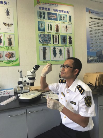 见惯了咖啡色的小飞蛾,你有没有见过白色的蛾?大多数普通人对于这些不会咬人的咖啡色飞蛾并没有太大的反感,然而这种白蛾却是在专业领域人见人恨、臭名昭著的“暴食君”。 这种白蛾的老家远在美国,多年前,一只美国白蛾历尽千辛漂洋过海来到了中国,从此便在我们国家落叶生根。美国白蛾的幼虫具有暴食性,可危害300多种植物,成片的树林被横扫一光,即使农药也对其无明显效果。直到1996年, 我国专家才发现了一种寄生蜂可以控制它。和这种美国白蛾一样的“偷渡客”还为数不少,而王新乐所要做的,就是在这些“偷渡客”踏上我国土地之前就把它们拦在门外。 “我就是个抓虫的” 王新乐就职于上海洋山检验检疫局,主要负责植物检疫工作,日常就是在各种集装箱内抓虫子。 对于王新乐来说,一年中最难熬的就是烈日当头的夏季。每天,来自世界各地的货船们在洋山深水港码头来来往往,装货远航,或者到港卸货。王新乐所要负责的,就是检查每一个装有植物类货物的集装箱,将有害生物拦截在国门之外。 这一天,天气预报所报告的上海最高温度是36摄氏度,而在洋山码头,虽然有海风加持,但是在无遮挡的码头上,凭着太阳的直射,地面温度也直冲50度。听说又有一批货物到港,王新乐和他的搭档在结束了手上上一批货物的检验后,着手准备迎接下一批货物。 这批货物是来自国外的一批原木。对于检验检疫局的王新乐来说,不论是检测难度还是检测环境,原木都是最不容易查验的货物之一。装载着原木的集装箱被一个个排列在码头,接受着艳阳的洗礼,王新乐告诉记者,输出国家为了保证出口的原木没有携带有害生物,原木在国外会进行检疫除害处理,这就意味着木头上会残留一些有毒有害气体的味道。 虽然已经被提前告知,但当王新乐和他的搭档打开集装箱的门时,箱内的高温伴随着杀虫剂刺鼻的气味一瞬间扑面而来,让人依然有点晕眩。王新乐却似乎早已经习惯了这股味道,笑嘻嘻地调侃着:这算不算工作环境恶劣? 进入集装箱后,王新乐和搭档用带着的工具开始采集样本:撬树皮、锯木段。为了保证查验的质量,需要仔细检查每一段原木,防止遗漏。驾轻就熟的王新乐在几分钟内就完成了整个集装箱的样本采集,和搭档一起带着样本和工具走出了集装箱,直奔实验室。 在实验室里,王新乐将从原木上带回来的样本依次放在解剖镜下检测,寻找目标:虫卵和幼虫。截至今年6月份,我国已经公布的进境植物检疫性有害生物达到了441种(类),一旦在进境的货物中查找到这441种(类)生物,该批货物就必须除害处理或者销毁和退运。 很幸运,王新乐手中的这批货物暂时并没有发现任何有害生物,这批木材被允许最终流入市场。 大乌龙下的歪打正着 别看王新乐现在谈起各种虫子来头头是道,其实20岁前的他做梦也没想到过,自己居然会和虫子打上一辈子的交道。 王新乐是内蒙古人,1983年出生,从小在内蒙古长大。从小经历了北方沙尘天气的王新乐一直希望自己未来能从事环保事业,改善国人的生存环境。因此填写高考志愿的时候,王新乐的首选就是环境保护。在看到志愿填报表上的植物保护学时,王新乐一厢情愿地认为保护植物一定就是保护环境,便坚定地将其填写在了志愿表上。 直到入学后,王新乐才得知植物保护和环境保护是两个完全不同的学科,植物保护所研究的对象也并非植物,而是那些生活在植物周围的病虫害。也正是从进入大学开始,王新乐开始了自己与虫子的“交道”。 大学刚开始,王新乐始终在纠结要不要转专业,但在接触了专业课程之后,他开始有了转变。学习研究虫子的过程中,老师要求学生们去往野外亲自捕捉虫子,并将虫子带回学校养育一段时间,最后用解剖镜解剖虫子,以此了解每一种虫子对于植物的危害方式。 随着了解的虫子逐渐增加,王新乐慢慢爱上了植物保护专业:“以往我以为环境保护就是从土地沙漠化、资源流失这方面去着手,后来开始意识到病虫害对于植物,进而对生态环境来说也是一种潜在的威胁。控制病虫害对于植物的危害,也可以间接保护我们的生态环境。” 在谈到自己的专业对于环境保护的作用时,王新乐向记者提起了一种名为松材线虫的虫子。松材线虫是一种专门寄生在松树中的线虫,一直以来,国内是没有这种虫子的记载的。上世纪80年代,南京中山陵附近的一片林子中的松树突然集体枯死,通过专家鉴定才确定是感染了松材线虫。经调查,原来是几个被丢弃在林中的,从国外进口来的木制集装箱上携带了松材线虫。“千万不要小看这一只只不起眼的小线虫,全世界到现在都没有找到可以真正对付这种线虫的办法。仅仅在我国,自从上世纪80年代发现了松材线虫后,至今已经造成了上百亿的损失。”王新乐说,随着对专业知识了解的越多,自己就越感受到了这门专业的任务之重。 国门生物安全 人人有责 除了木材中的虫害,水果、绿植等一切有关植物的国门生物安全都在检验检疫部门的检验范围内。猕猴桃、芒果、菠萝、樱桃……这些在水果摊上常见的进口水果都是王新乐平时需要检验的内容。在检验水果的时候,检疫人员必须做到快、准、狠——水果的保质期短,从采摘、运输、检验,最后到消费者的手中,其间的每一分钟都不能耽搁;水果中的虫害有时又会非常危险,不仅会影响入侵地的生态环境,也会对国内的农产