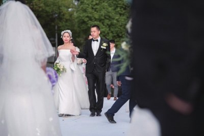 虽然当天的气温冻人,但现场气氛却格外温馨。婚礼在水鼓舞的热情开场表演后正式开始。启动仪式上,华东政法大学党委书记曹文泽、校长叶青、副校长林燕萍,锦天城律师事务所高级合伙人沈国权律师共同为“以爱之名 情定华政”立板注入金沙。在花童的指引下,65对新人依次入场。