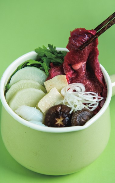 寿喜锅作为一道传统日料,在冬天绝对是最能温暖人的东西了。比起火锅的辛辣刺激,寿喜锅温润得多,寿喜锅使用的铸铁锅有着非常好的保温作用,在家可以用普通汤锅代替,制作起来其实也相当方便,几个步骤就能在家享受这份温暖啦。 配方 牛肉片 200g 葱段 1根 老豆腐 1块 香菇50g 魔芋丝 50g 茼蒿菜 适量 金针菇 50g 萝卜 50g 日式酱油 2大勺 昆布 少许 味淋1大勺 黄油 1大勺 砂糖 1勺 做法: 1.将蔬菜牛肉洗净切块,牛肉切成尽可能薄的薄片。 2.昆布用1升水浸泡到柔软,浸泡的水去除杂质后留做汤底。 3.锅中加入黄油,溶化后加入少许葱碎。 4.炒好后可将牛肉稍许煎一下,如果用肥牛卷可跳过。 5.加入昆布汤、味淋和酱油,煮沸后可将萝卜先加进去煮。 6.魔芋丝洗净后跟香菇一起焯水,然后将食材按照喜好码进锅子里,再盖上盖煮5-10分钟即可出锅。 7.出锅前还可以敲个鸡蛋,用余温煮出一颗溏心蛋。 超简单溏心蛋 1.用小火烧水,当水中有小气泡开始慢慢上浮时(不是完全烧沸腾)准备放鸡蛋。 2.新鲜鸡蛋的蛋白是非常完整的,溏心蛋尽可能选择最新鲜的鸡蛋。若鸡蛋放了几天的话可以把鸡蛋先敲到一个小碗里,再用勺子在锅里搅出一个漩涡,将鸡蛋慢慢倒入漩涡中心。水流会将鸡蛋牢牢地控制在锅子的中心。 3.继续以小火煮2-3分钟就可以了。