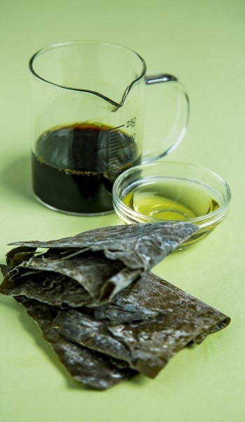 2.昆布用1升水浸泡到柔软,浸泡的水去除杂质后留做汤底。