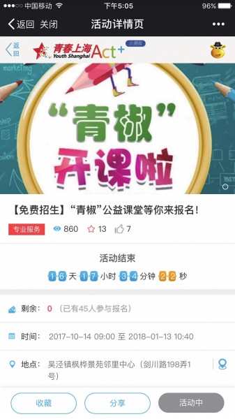 本月最受欢迎活动:【免费招生】“青椒”公益课堂等你来报名!