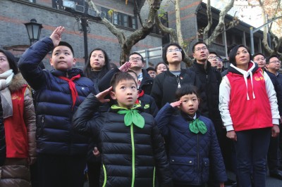 新年第一天,在中共一大会址纪念馆,2018年首场“国旗下成长”上海青少年升国旗暨爱国宣讲主题活动举行。