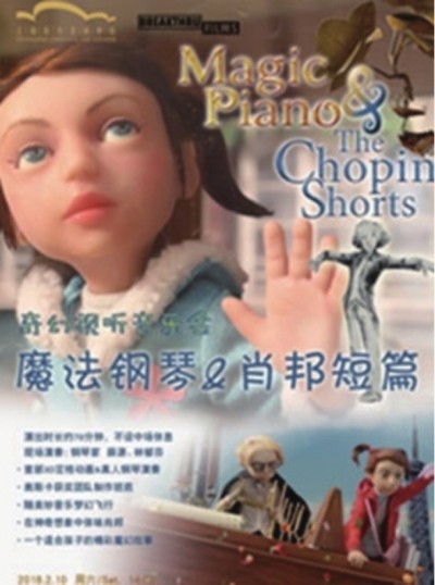 2010年为纪念肖邦诞辰200周年而作,由第80届奥斯卡最佳动画短片《彼得与狼》导演马丁·克莱普亲自执导,是全球首部定格动画与真人钢琴现场演奏结合的立体3D电影。《魔法钢琴》以肖邦练习曲为音乐背景及情感基调,讲述了家庭间的亲情与梦想。观众们将在音乐厅中亲历3D视效的奇妙幻境,随感人的肖邦音乐梦幻飞行。