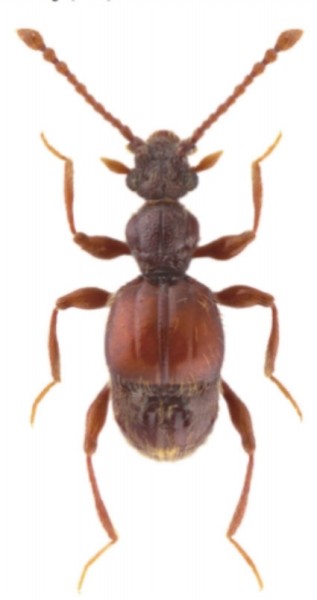 这个名叫天马华冥小葬甲(Sinobathyscia tianma)的新种甲虫的体长,只有区区1.4毫米,西郊公园毛角蚁甲在它的身边看起来就像个小巨人一般。最早由恋野物语的宋晓彬和上海师范大学的汤亮副教授一同在天马山采集得到,采集地点临近一处貉的固定排便场所。标本经由旅捷克博士后王成斌比对研究后,确认为华冥小葬甲属的一个新物种,相关研究成果被发表在国际学术期刊Zootaxa上。