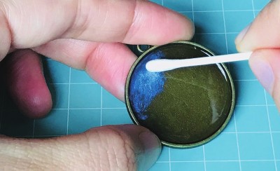 用棉签沾取适量不同颜色的珠光色粉,均匀涂抹,制造星空效果。