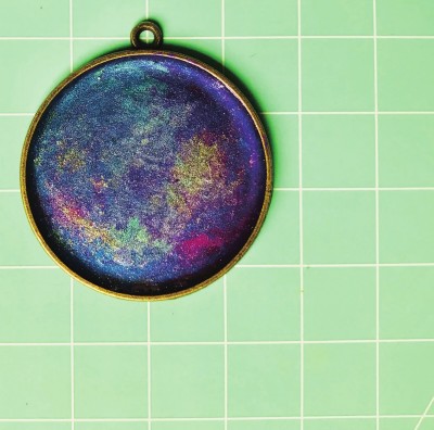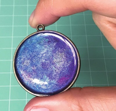 最后穿上挂绳或搭配项链完成滴胶星空挂饰。