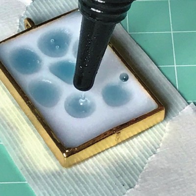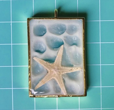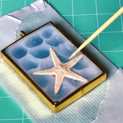 曾经被树脂击中的昆虫保留万年,成为稀奇玩物。如今人们用水晶滴胶,可以将干花、木块、碎石、羽毛等任何自己喜欢的物料,通通变成首饰。上期我们跟着上海文物商店的老师,制作了一款滴胶星空挂饰,大家是否还意犹未尽呢?这一期,就让我们再来做一款充满海洋气息的滴胶挂饰吧! 所需材料:UV胶、金属边框、调色粉、亮片闪粉、装饰贴纸、贝壳海星、棉签、牙签、美纹胶带、紫外线灯等。 Step 1 将美纹胶带贴于边框背面,注意边缘部位务必贴牢,以免胶渗漏。在边框内薄涂一层UV胶打底,用牙签均匀涂抹,在紫外线灯下一分钟照干,或放置在日光下五至十分钟使其固化。 Step 2 在边框中加入少量UV胶调色成海水蓝,均匀涂抹一层后照光固化。 Step 3 加入适量UV胶与色粉调成白色,均匀涂抹一层,随意滴入透明UV胶,形成水波纹,放入海星装饰,照光固化。 Step 4 均匀涂抹一层透明UV胶封顶,在紫外线灯下一分钟照干,或放置在日光下五至十分钟使其固化。撕下背面的美纹胶带,在背面薄涂一层UV胶,使背面光滑平整,照光固化。