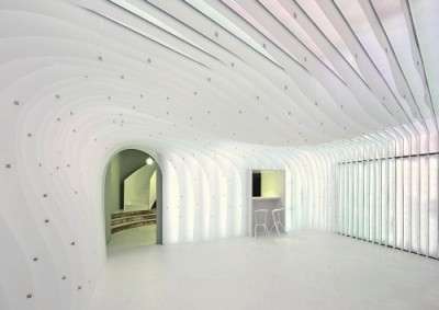 每个路过F立方公益时尚活动中心(以下简称“F立方空间”)的人,都忍不住停下脚步,在橱窗外探头观看。10月19日,这家城市空间更新店正式开幕,F立方空间是由上海服装集团、方方国际教育工作室和Archibucks联合投资的活动共享空间。这家城市空间更新店的设计理念是城市光茧与山洞,邀请了龙美术馆的建筑名师为其设计。一楼采用了无极变色LED灯光设计,拿起一只小小的遥控器,便可以随意切换各种颜色的灯光。拉开可移动的“白色大门”,你会发现另有玄机,原来隔壁就是上海服装集团精选的意大利名牌服饰店,性价比还挺高。