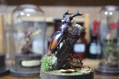 带着这个大胆的想法,蓝图斯开始到处寻找关于蒸汽昆虫的资料,原来,蒸汽昆虫许多年前就已经在国外诞生了,然而即使在欧美,这也算是一种小众艺术,国内更是鲜为人知。虽然昆虫标本制作和蒸汽朋克艺术都不算是冷门,但是能将冰冷的金属零件和小巧柔弱的昆虫合二为一,并做成艺术品的人却屈指可数。作为国内该领域的第一人,蓝图斯基本靠自学。