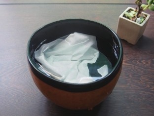 将棉布浸放在盆中半小时以上,如在气温较低的情况下可用温水浸泡。
