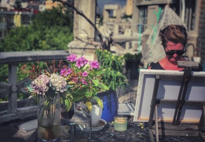 在这里你可以感受到老上海的生活气息与油画艺术的完美结合,顶层大露台视野开阔,可以远眺周边的风景。在天台上作画,清风徐来,花香扑鼻,宁静幽雅处便是自然与人文的交流。顶层阳光充沛,各种花朵一簇簇地在怒放。夏天乘凉冬天晒暖,满满的都是小确幸,整个风景仿佛是画里的“世外仙境”。