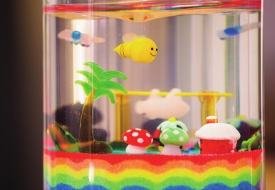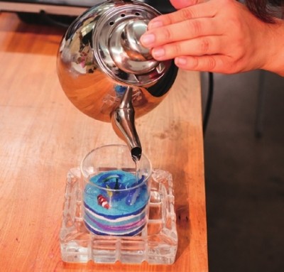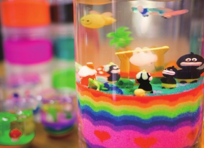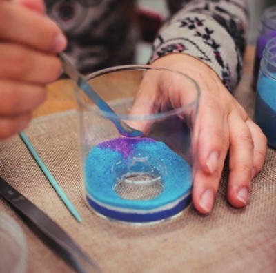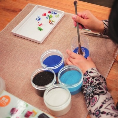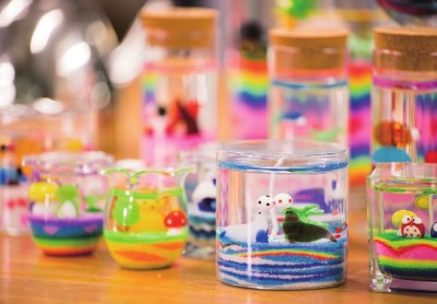 珊珊打造的玻璃工作室仿若是一片玻璃的迷境。橱窗中的玻璃艺术品静静地闪烁着熠熠的光,桌上散落的玻璃小摆件却又让人忍不住想摆弄几分,鲤鱼玻璃镇纸中流动着梦幻的色彩,阳光折射过来,好像在色彩中能触碰到玻璃的温度,没有脆弱与尖锐,只剩下通透与温暖。 珊珊的求学经历,像极了彻头彻尾的艺术家,在上海大学的玻璃工作室学习了铸造,随后又远赴艺术气息浓厚的法国学习空间色彩。虽然始终在艺术的领域中寻寻觅觅,但却不愿意将艺术定义为一门学科。艺术,这两个字似乎有着意外的重量,从事艺术的人多半向往着特立独行,追求内心世界的表达,因而观众与作品之间似乎总是隔着一个作者,唯有经历相似、经验相同者才能在作品中读出另一个自我,这大约是艺术总是小众的原因,却也是珊珊开始果冻蜡DIY的机缘。 果冻蜡DIY的材料简单,过程也不算复杂。只需要在器皿的底部铺上几层彩砂,然后放上形态各异的玻璃装饰,再灌上液态的环保蜡,这样简易而充满创意的DIY大约是最适合孩子的。孩子对于颜色最是敏感,对于成人而言已经习以为常的色调,在孩童的眼中却可能重构成另一片天地。蓝色是海洋,绿色是森林,小小的玻璃器皿是孩子天马行空想象中另一片鲜活的天地,那些通透而鲜艳的玻璃小摆件也在其中悠然自得地拥有了新的生命。来参加果冻蜡DIY课程的孩子,年龄是不同的,有时完成一个作品并不能满足他们对想象世界的渴望,总要用不同的色彩构建不同的世界。而年龄更小的孩子,是不能独立完成作品的,但是只要彩砂在他们稚嫩的小手中停留,艺术与创意也就在他们的心中扎下了根基。艺术,大约本该这般润物无声。 从果冻蜡DIY中获得乐趣的大约不仅是孩子,珊珊说,也许家长才是改变更多的人。从不了解果冻蜡DIY,认为这只是一个没什么意思的无聊消遣,到亲手制作果冻蜡,体会到它的艺术性与魅力,成人的固有世界观开始被这些简单的美好所触动。分享让家长懂得尊重这门手艺,也让这门生活的手艺更具有生命力。 果冻蜡DIY大约算是实践了珊珊对于艺术的定义,不是孤芳自赏,不是阳春白雪,而是所有人都能懂得。对于珊珊而言,学艺术的时间太久,久到有时会有一些无形的束缚,譬如对配色的固有定式。然而果冻蜡DIY却能给予她更多的灵感,孩子的世界没有什么是一定的,美总是在意外中产生。