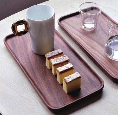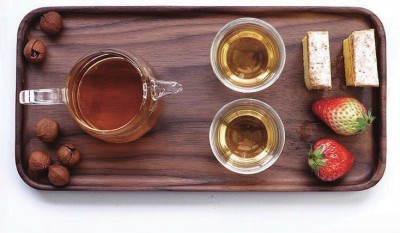 托盘大约是茶具中最容易忽略,却又最温婉大气的器具。它不同于茶壶、茶杯,形状各异,总显示着拥有者的独特情怀。托盘似乎总是非方既圆,好像少了些个性,却又多了一份包容。此款托盘,以黑胡桃木制成,自然的木质色彩,蜿蜒的树理纹路,是夏日午后,亲友相聚时,最好的下午茶用具。