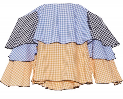 不少女孩都觉得将肩膀紧紧包裹住才能够真正地解决肩宽这个问题,其实恰恰相反。将肩膀大大方方地露出来,反而比畏畏缩缩的欲盖弥彰要来得有用得多。最简单粗暴的选择便是荷叶边的拼接,不仅可以将女孩们的肩部线条收窄,同时荷叶边被设计在了不同位置对于遮肉的功能也是不同的。胸口的拼接可以将肚腩隐去不少,而袖口的多层次拼接则是可以让你自然藏住“拜拜肉”也不显得做作。一些立体剪裁的融合也可以起到类似的效果。在颜色的选择上可以以小清新的蓝、白色或是条纹为主,也可以以牛仔色来进行搭配,将青春与活泼的风格进行到底。
