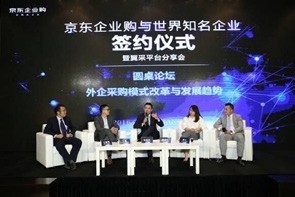 京东企业购与世界知名企业签约仪式在上海举行。京东商城副总裁、京东大客户部总经理和联合利华饮食策划销售运营总监和飞利浦(中国)投资有限公司大中华区间接物料和服务采购总监等7家外企代表参会并完成签约仪式。