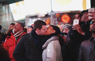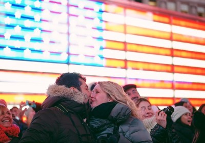 在时代广场众人的呼声中,他们正对荧幕,留下满满的爱。