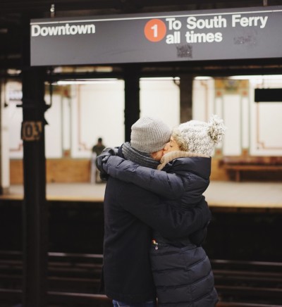 地铁站里,每一个短暂别离都要甜蜜地say bye。