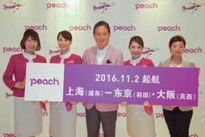 来自日本的Peach乐桃航空将于今年11月2日开通上海(浦东)-东京(成田)、上海(浦东)-大阪(关西)的航线。Peach缩短了中国内地与日本的距离,创造了“空车列车”的概念,可以像地铁、动车一样随意使用。